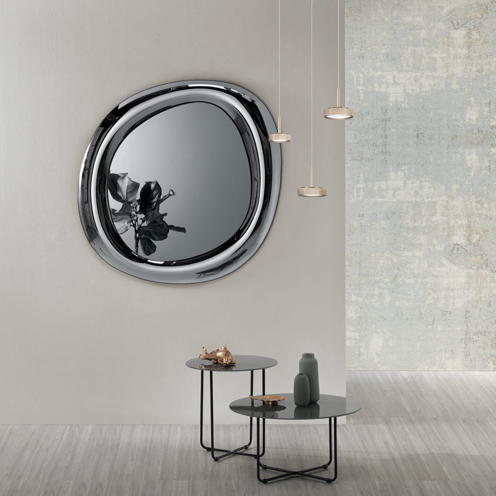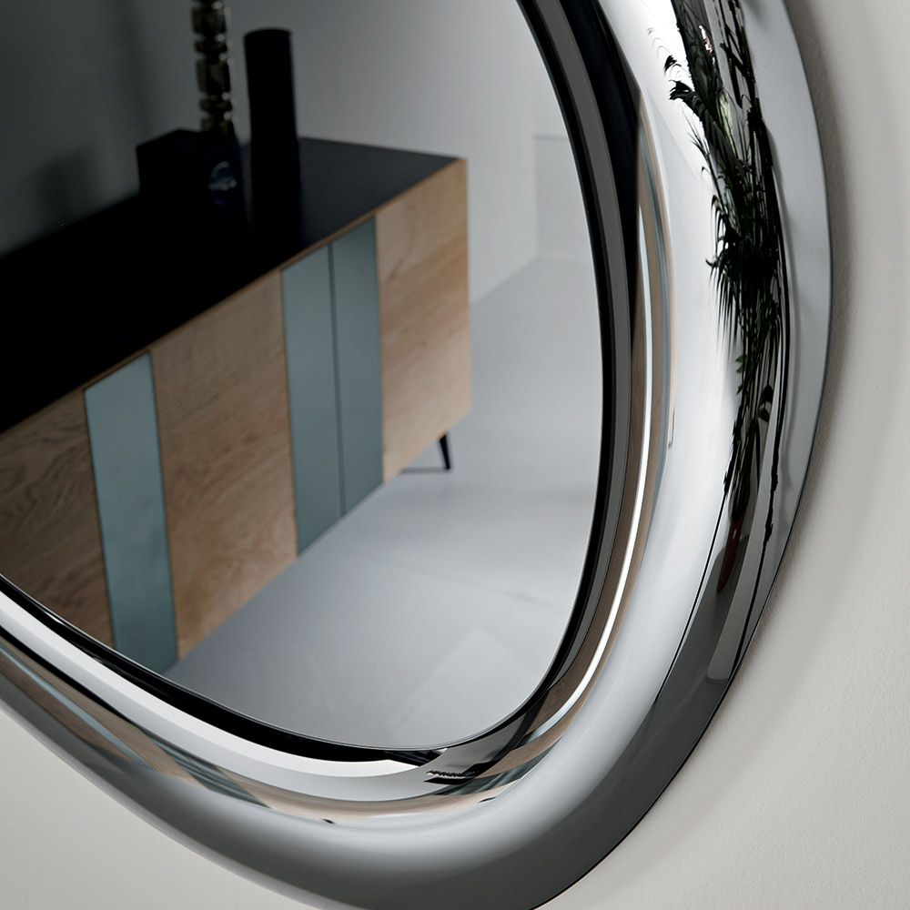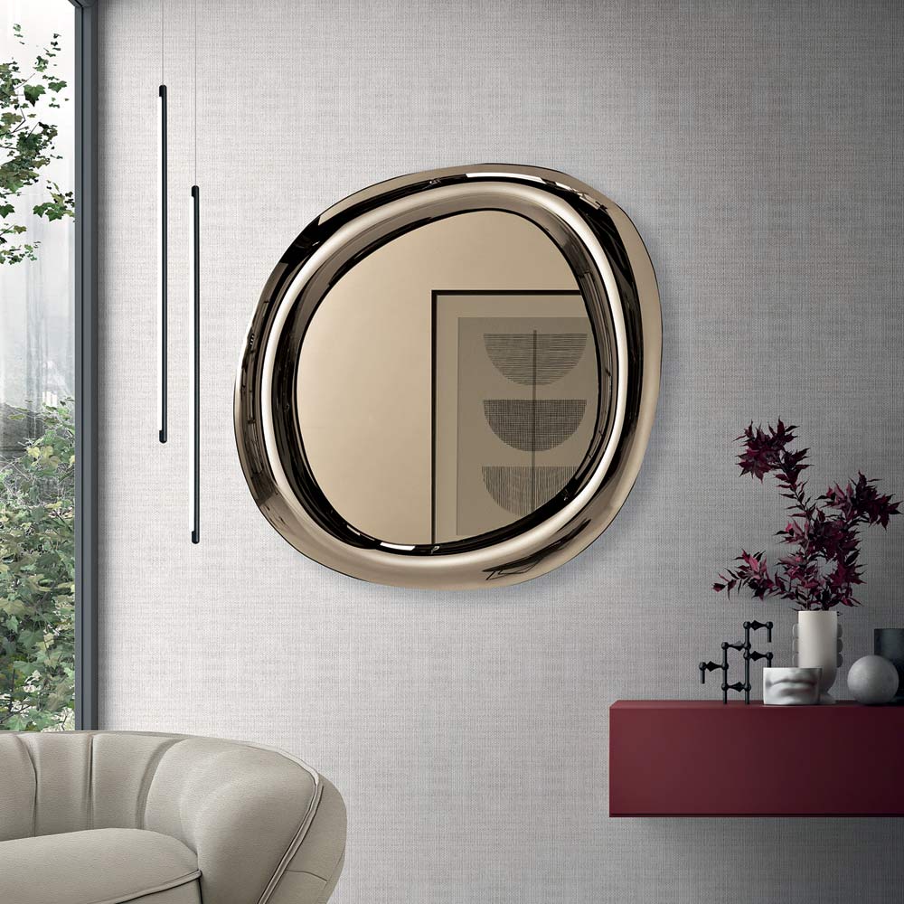 Ein eleganter, in Italien gefertigter Designer-Wandspiegel , ideal zur Verschönerung von Räumen wie Eingangsbereich , Wohnzimmer oder Schlafzimmer . Sein fließendes, modernes Design zeichnet sich durch weiche, harmonische Linien aus, die den Spiegel in ein raffiniertes Dekorationselement verwandeln.