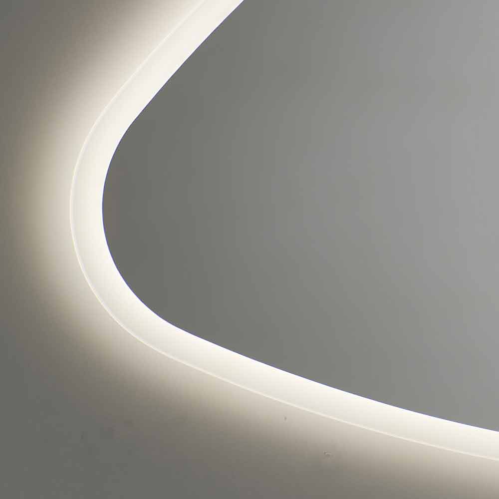 Geformter Wandspiegel aus Italien aus 4 mm dickem Glas mit Sandstrahlung und LED-Hintergrundbeleuchtung.