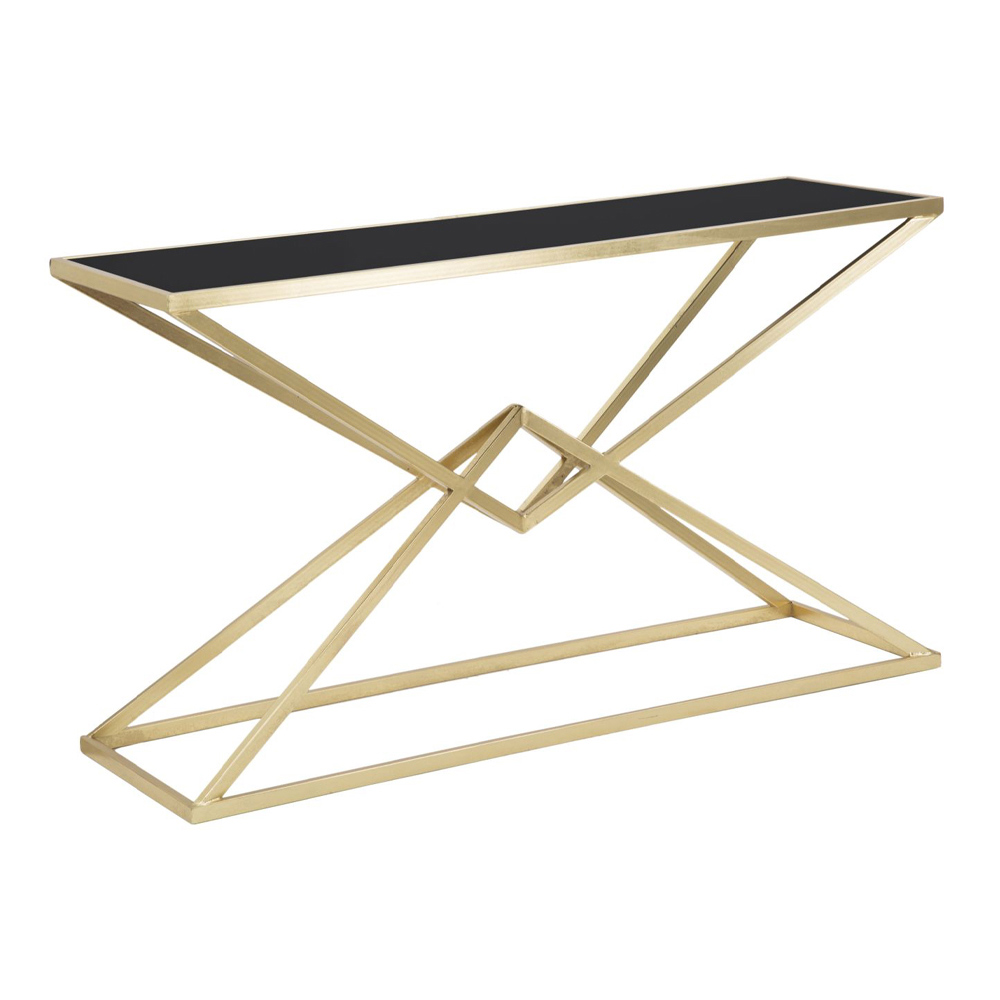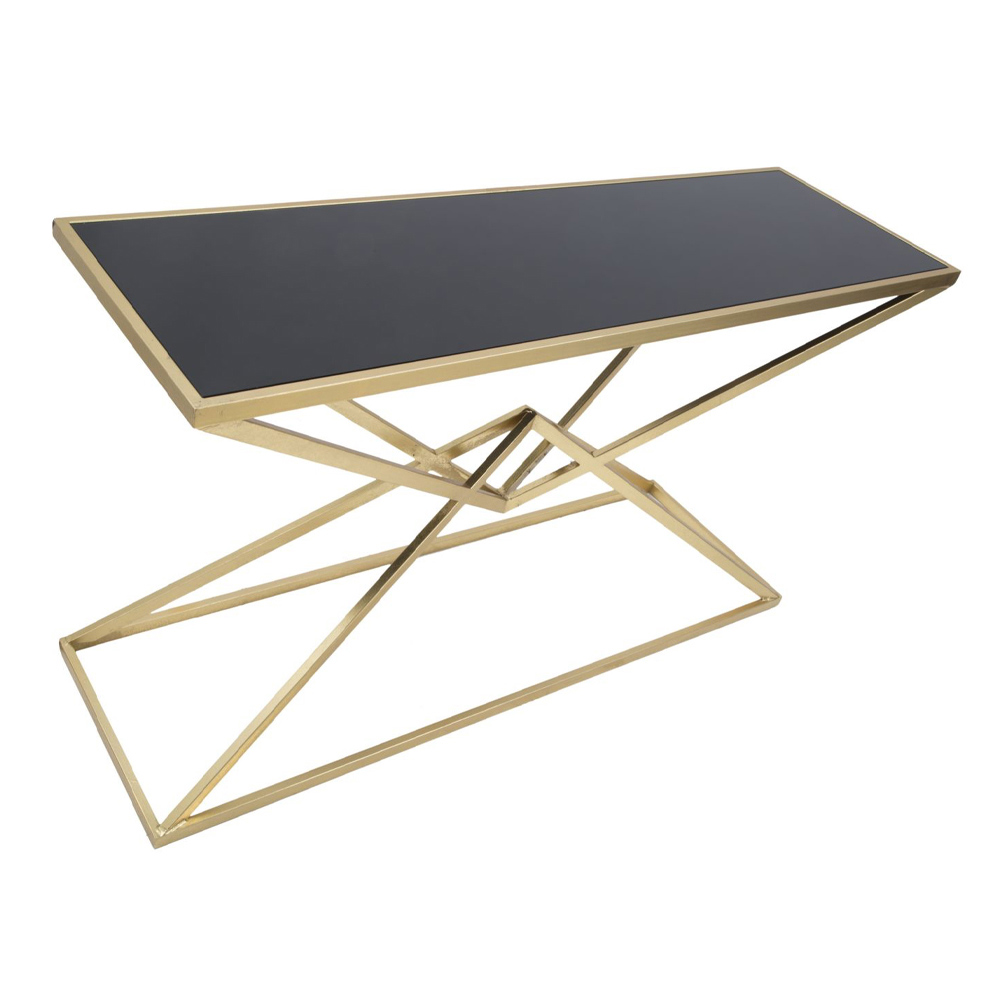 Moderne feste Konsole aus Eisen mit goldenem Finish mit schwarzer Glasplatte.