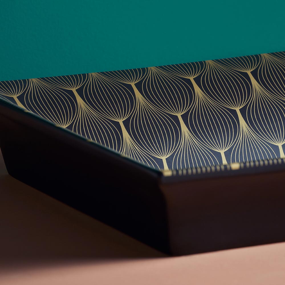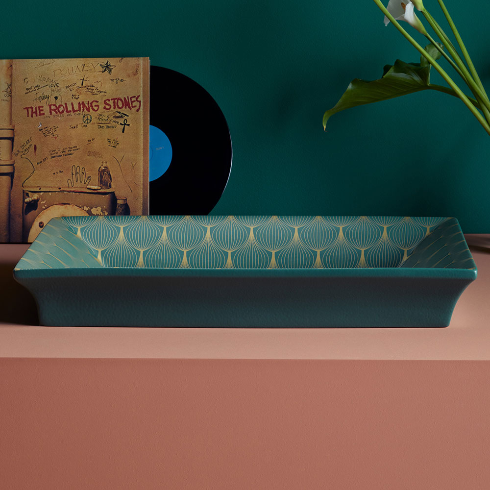 • Innenstruktur in mattem Smaragd und Gold, außen in mattem Smaragd-Email