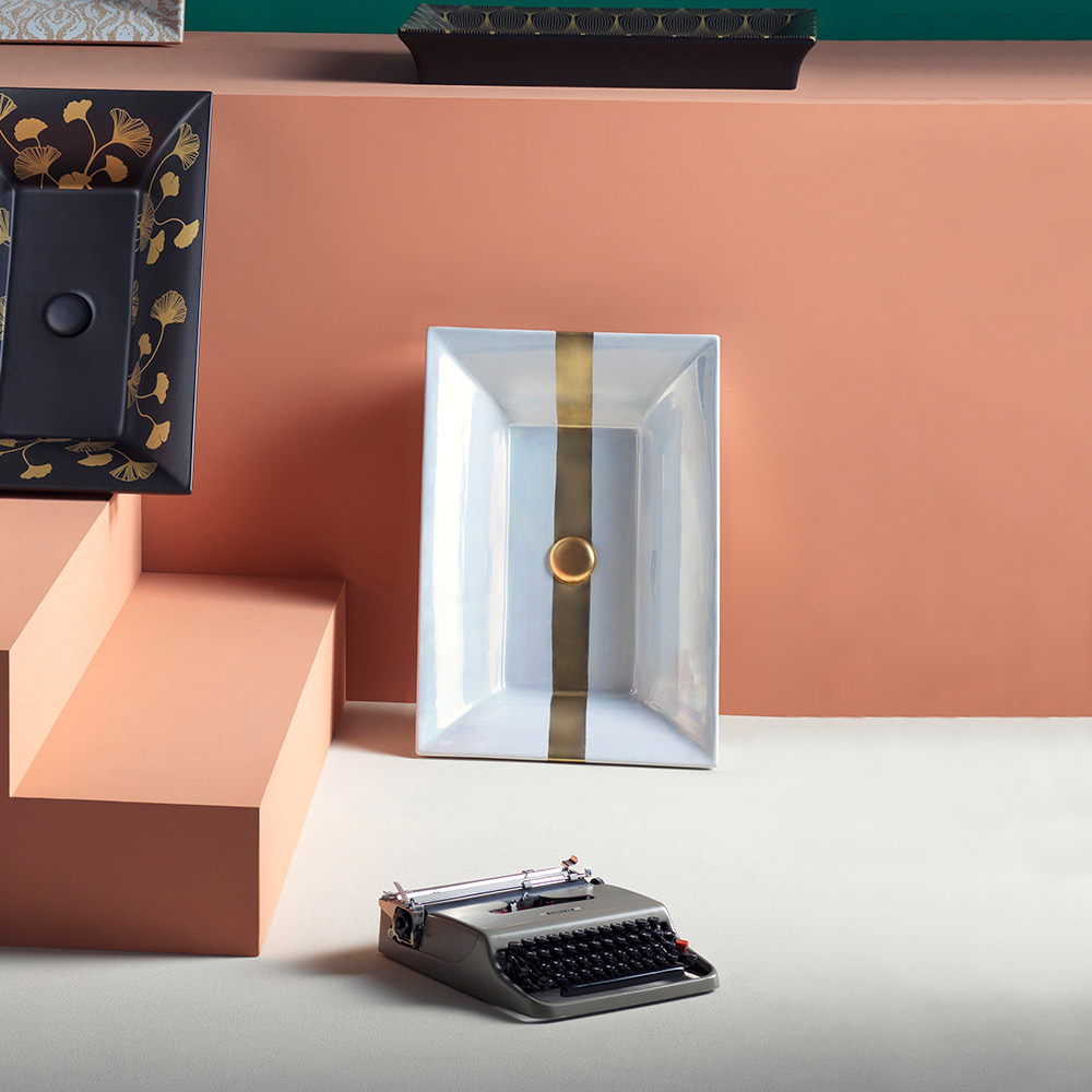 Dank der raffinierten Farbpalette und der Emaillierung, die die leicht erhabenen Dekorationen verschönert, erhält dieses Produkt Eleganz und Einzigartigkeit. Die klassische und strenge Form unterstreicht die Qualität der Oberflächen und macht dieses Waschbecken perfekt für die Dekoration jedes Badezimmers.