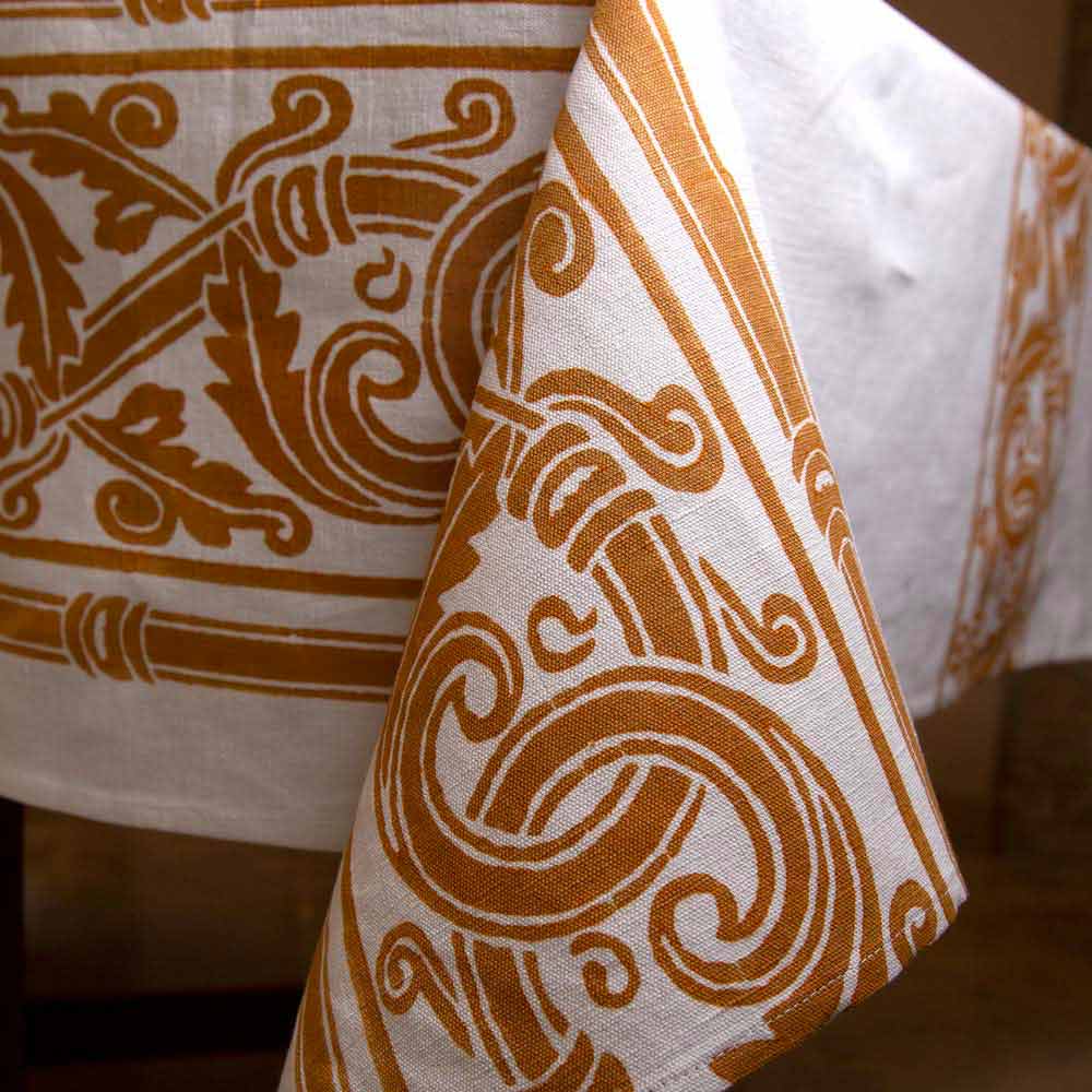 Handbedruckte Tischdecke von hoher italienischer Handwerkskunst in Baumwolle und Leinen