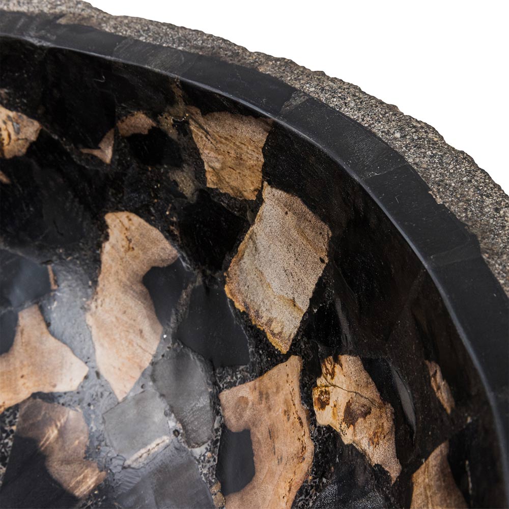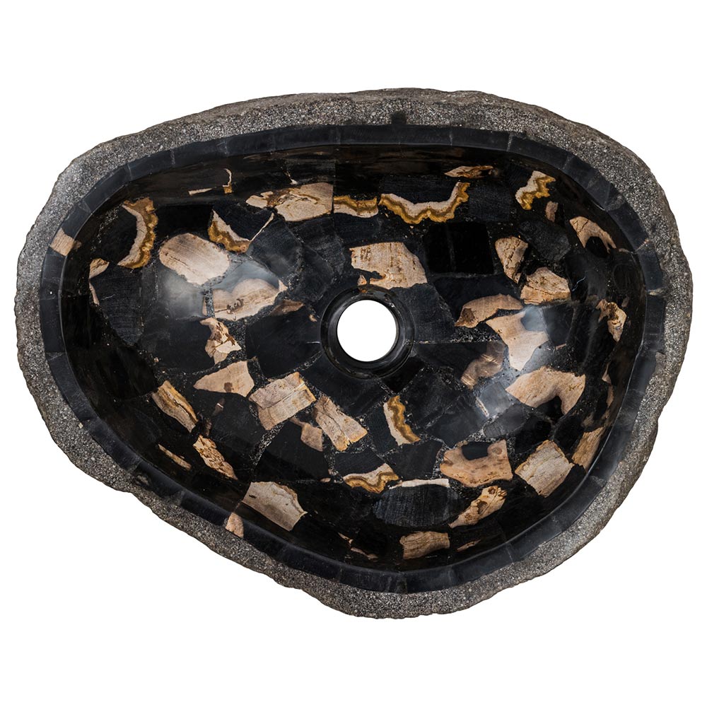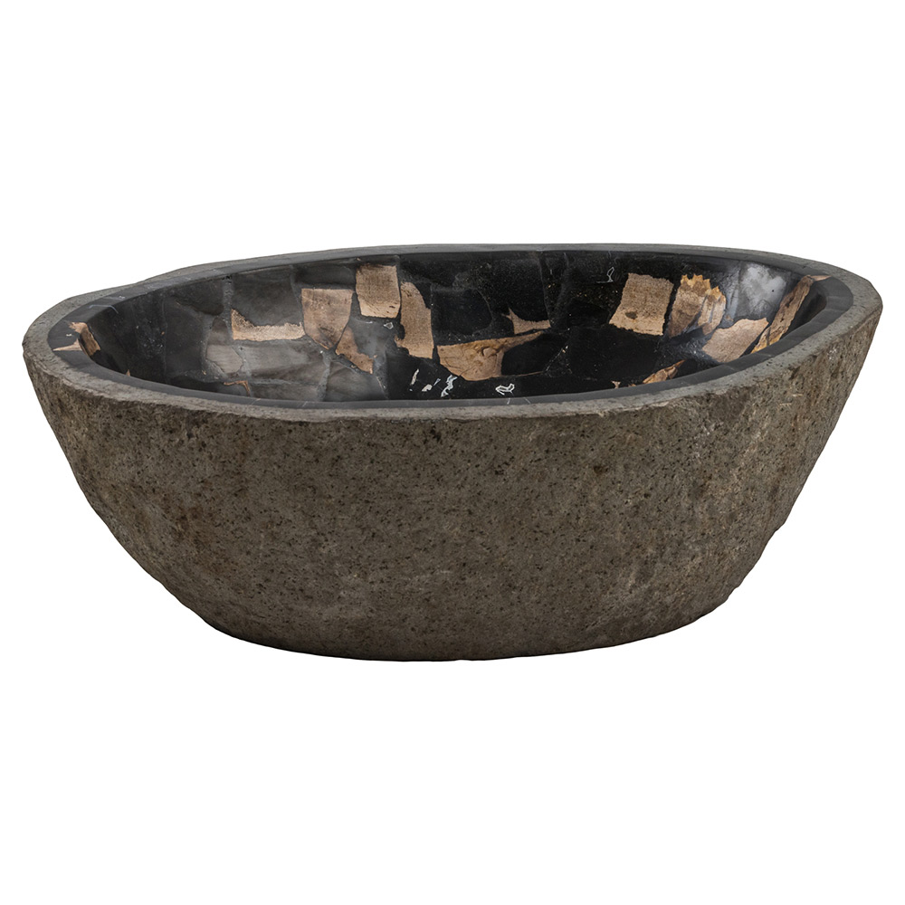 Palizzi ist ein Aufsatzwaschbecken aus Flussstein mit einem Onyxsteinmosaik.