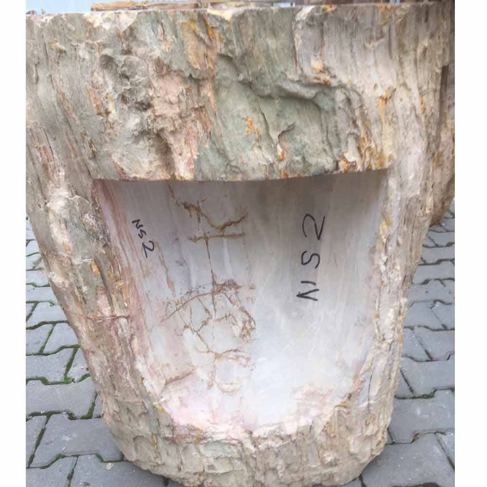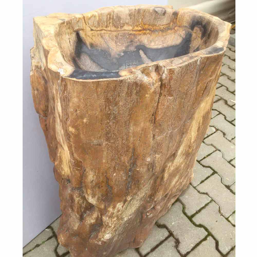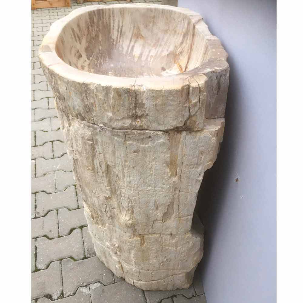 Standwaschbecken aus versteinertem Holz, handgefertigt.