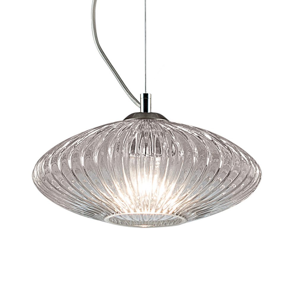Mundgeblasene venezianische Glas-Pendelleuchte mit gerippter Verarbeitung.
