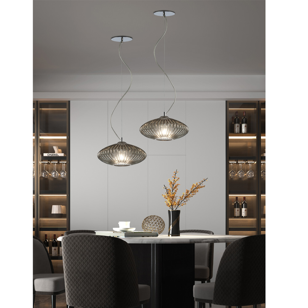 überzogenem oder transparentem Glas, das mit einer gerippten Verarbeitung versehen ist, um einen starken visuellen Effekt und beispiellose Lichtspiele in jedem Wohn- oder Objektbereich zu erzeugen.