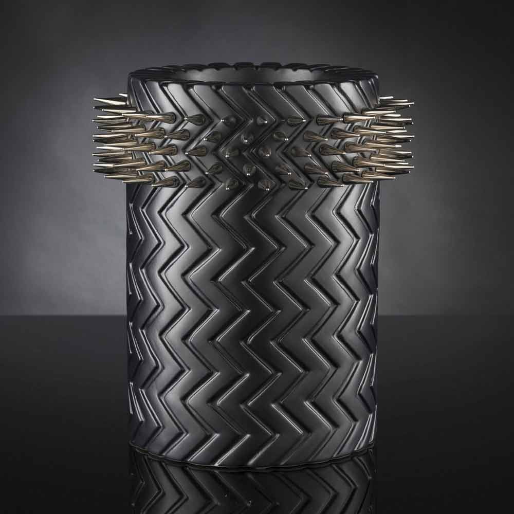 Dekorative Vase aus mattschwarzer Keramik mit Stahlnägeln hergestellt durch eine Made in Italy Handwerkskunst . Eine imposante Ästhetik mit einer starken zeitgenössischen Persönlichkeit , die durch die Verwendung von zwei verschiedenen Materialien unterstrichen wird, die zu einer innovativen und revolutionären Idee verbunden sind, ideal für diejenigen, die es lieben, ihre Räume einzigartig und mit Charakter einzurichten. Die handwerkliche Produktion stellt eine ihrer Stärken dar, da sie den Wert und die Qualität des Produkts steigert und unterstreicht und ein exklusives und raffiniertes Ergebnis zum Leben erweckt. Ein idealer Stil für die unterschiedlichsten Umgebungen, von der Wohnungseinrichtung bis hin zu Hotels, Restaurants, Objektbereichen, Spas, aber auch als Rahmen für Veranstaltungen und Hochzeiten.