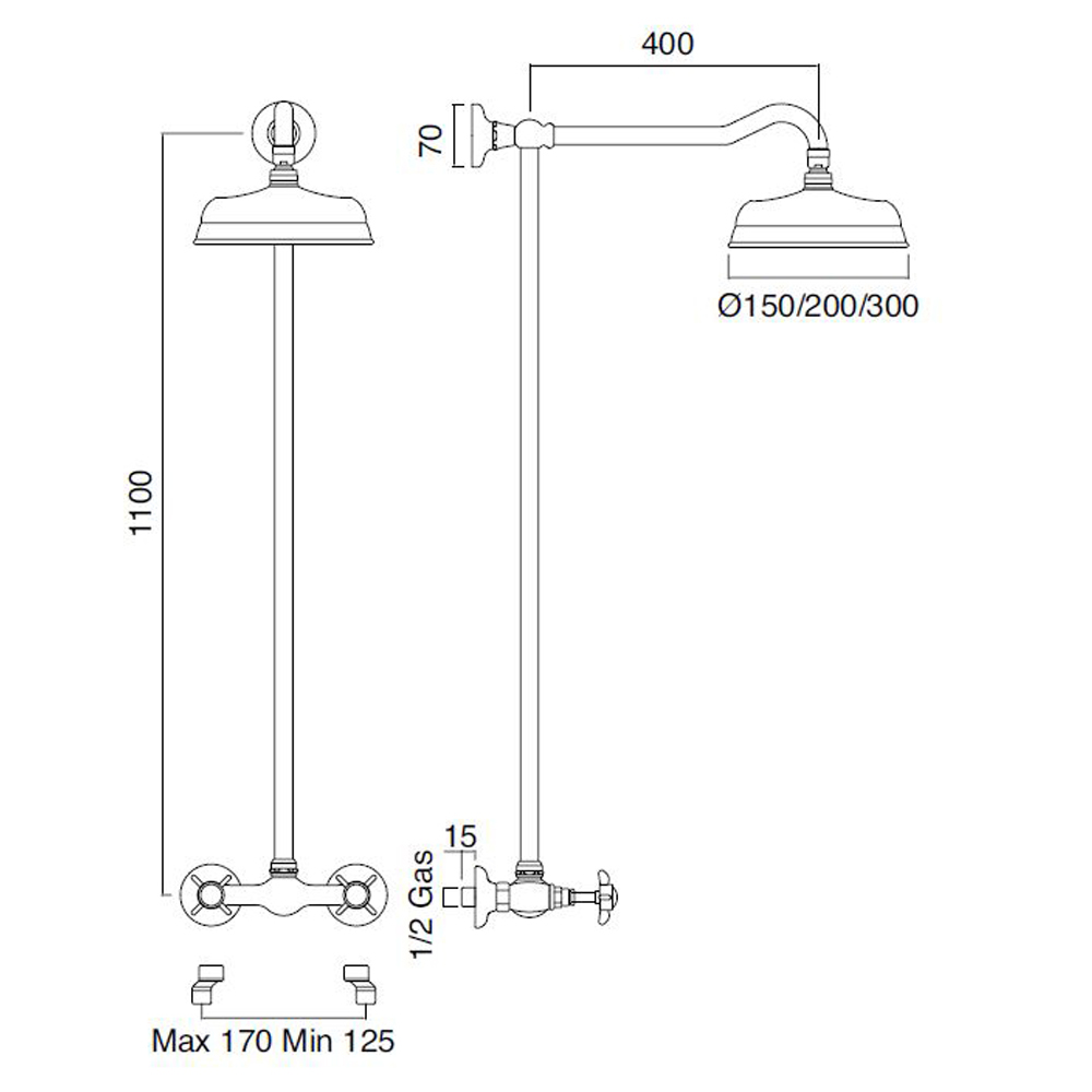 Verfügbare Größen für den Duschkopf:- Durchmesser 15 cm