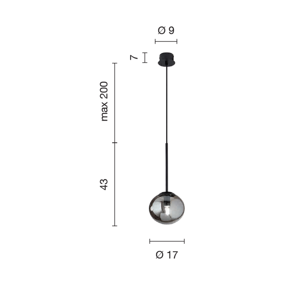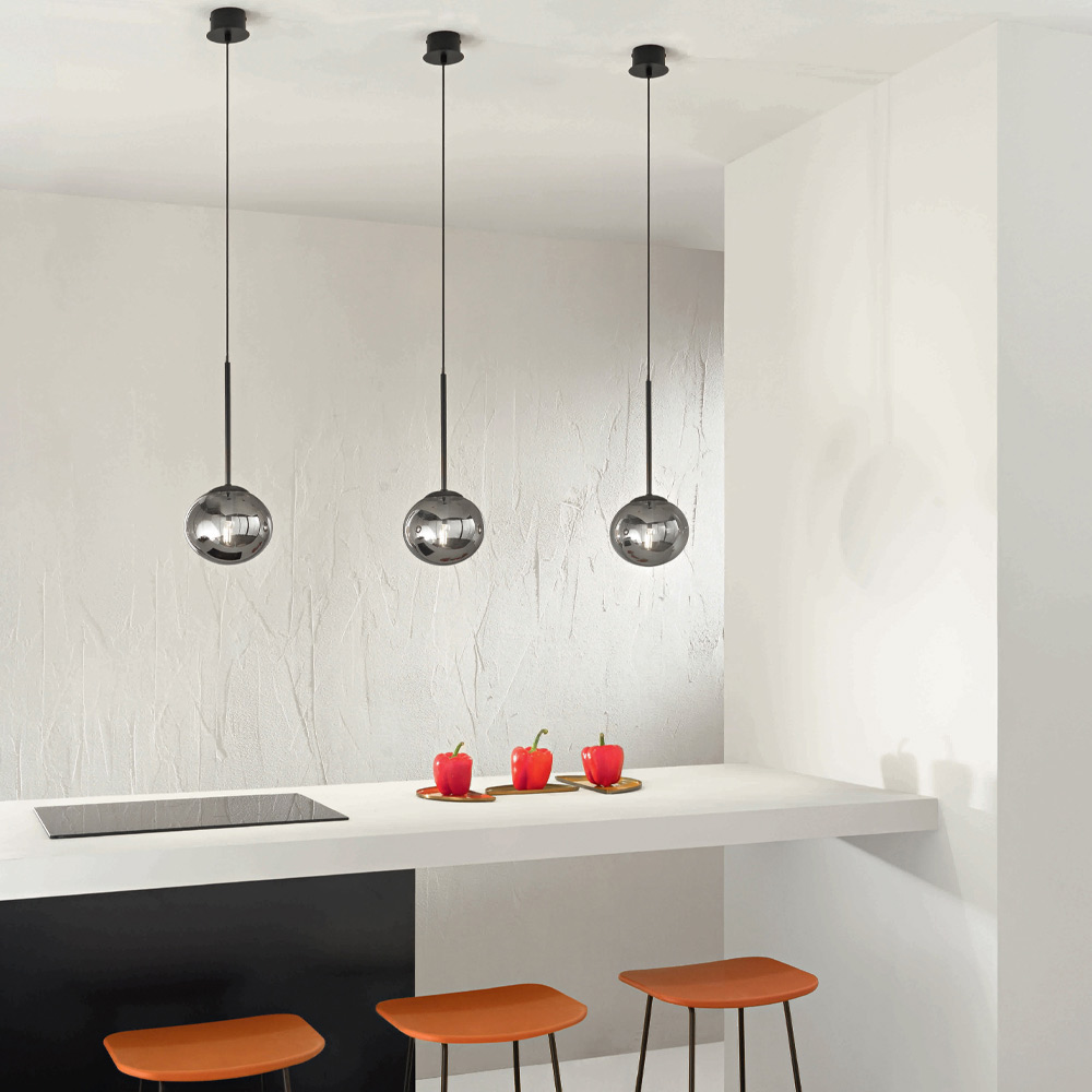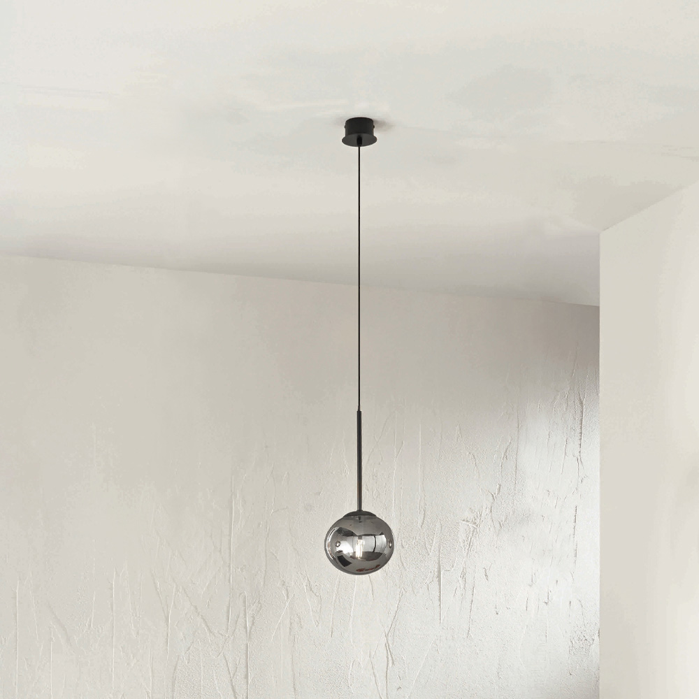 Komplett in Italien hergestellteHängeleuchte aus lackiertem Metall und schwarzem geblasenem Glas mit LED-Licht und längenverstellbarem Kabel .