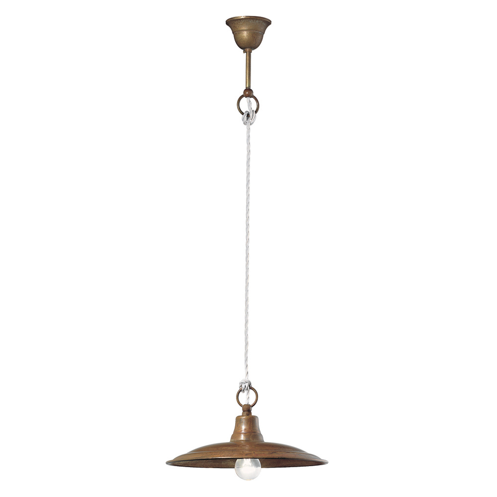 Hängelampe mit antikem Messingrahmen,antikem Kupferkopf und längenverstellbarem KabelKomplett in Italien hergestellt. Bei den Leuchten der Chiocciola-Kollektion aus Eisen, Messing oder antikem Kupfer steht die Funktionalität im Vordergrund. Sie sind von schlechter Kunst inspiriert und haben klare Formen, frei von jeglicher Künstlichkeit. Die Kollektion besteht aus Pendelleuchten, Wandleuchten, Deckenleuchten und Gartenleuchten.