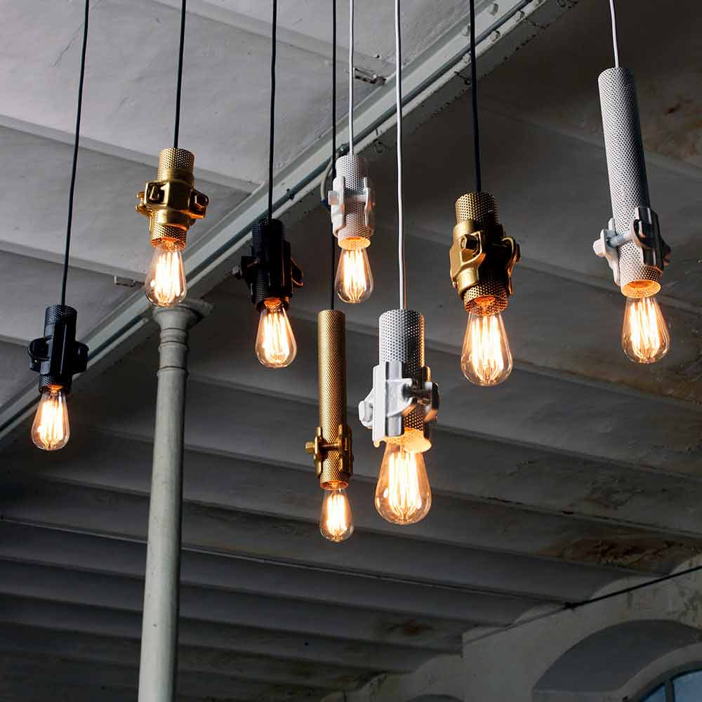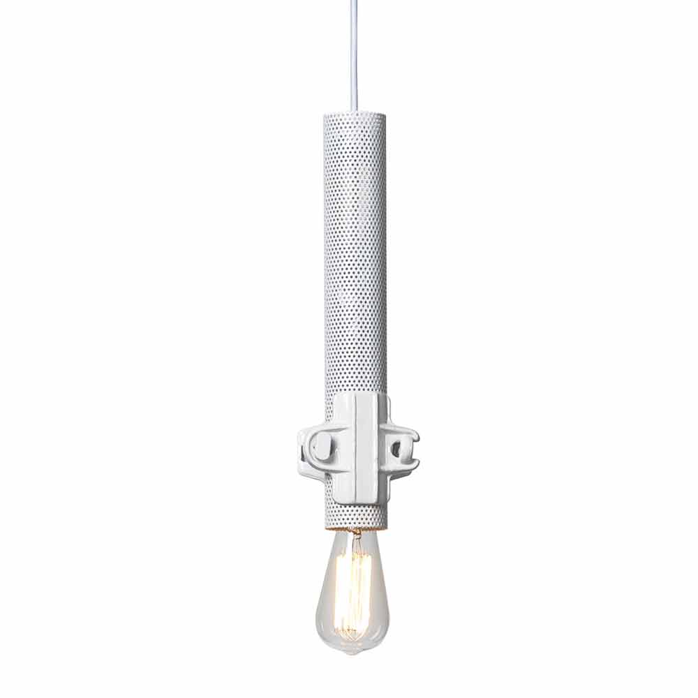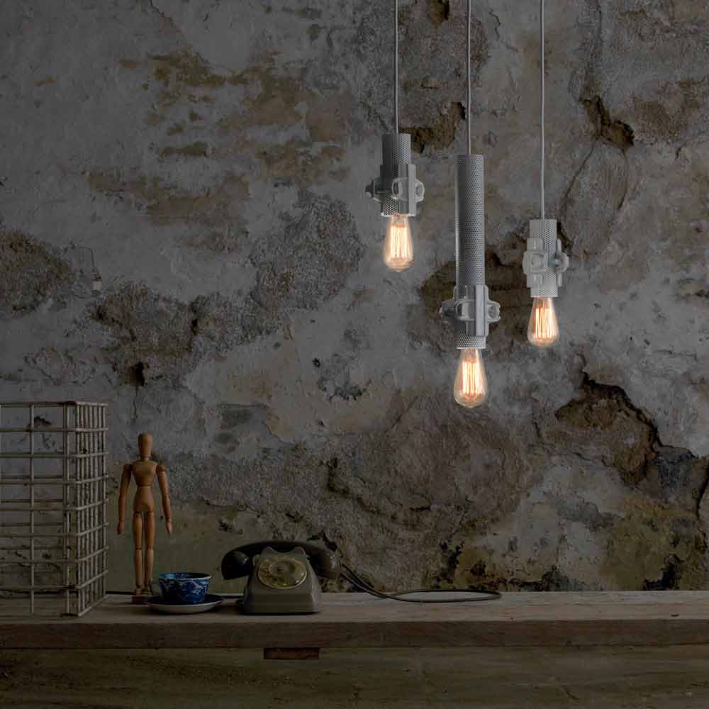 Diese originelle und einzigartige Hängelampe besteht aus einer Röhre und einer Verbindung, zwei Elementen, die sich in Lichtvektoren verwandeln können, um ein Design zwischen dem Technischen und dem Anspruchsvollen des Industriestils zu schaffen.