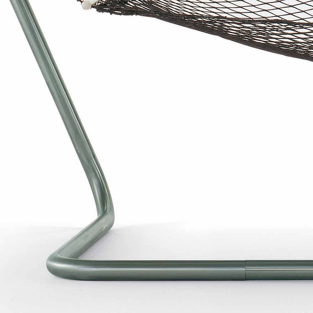 Hängematte im schwarzen Gartennetz mit Sockel, modernes Design made in Italy.