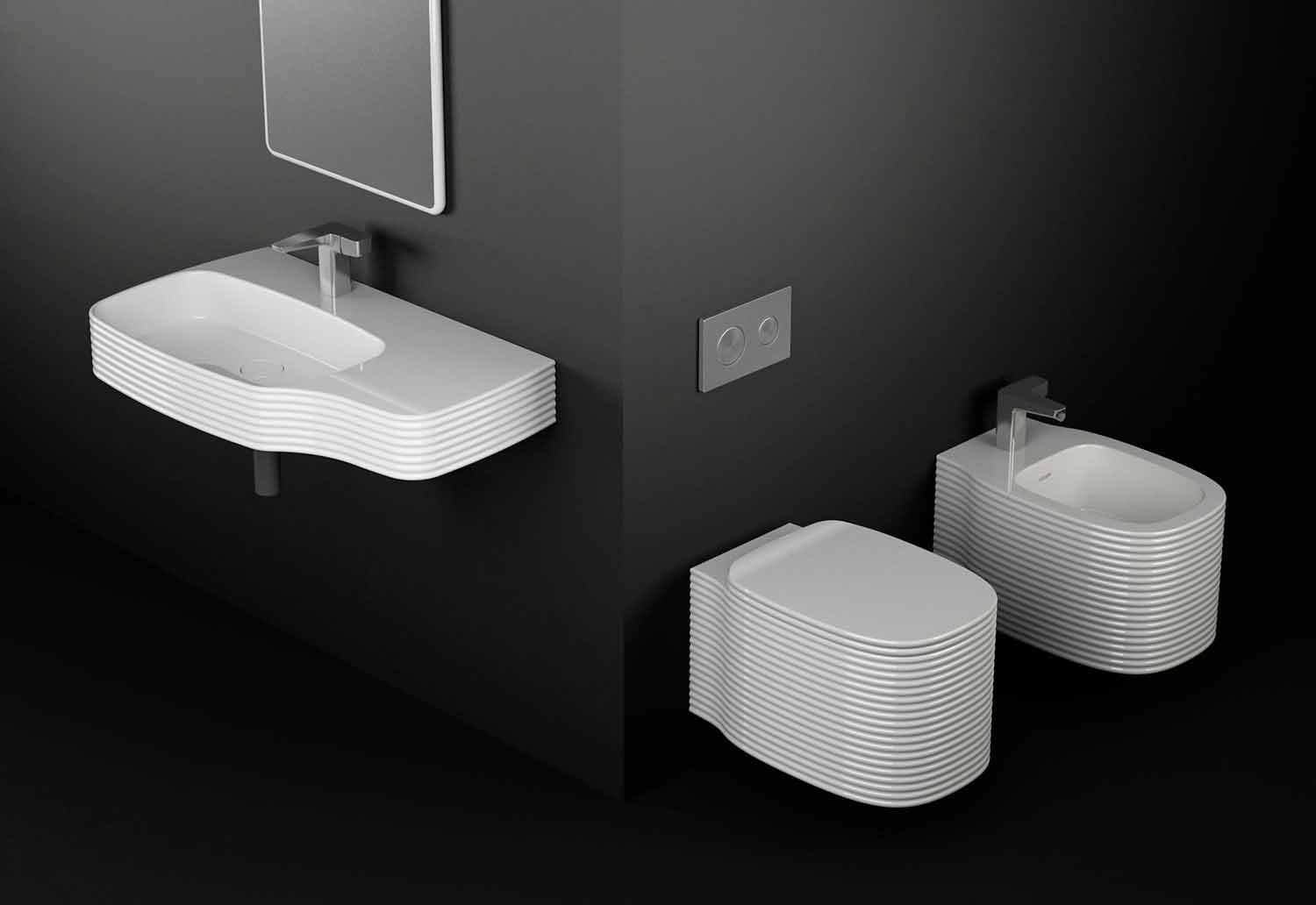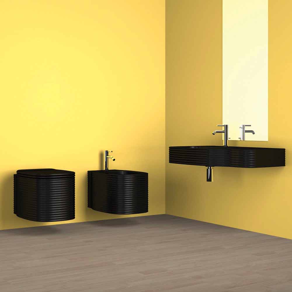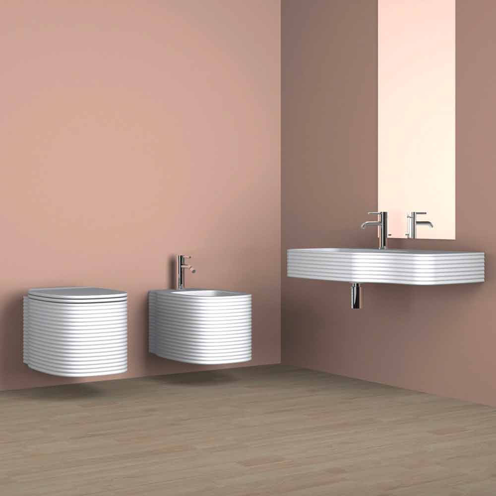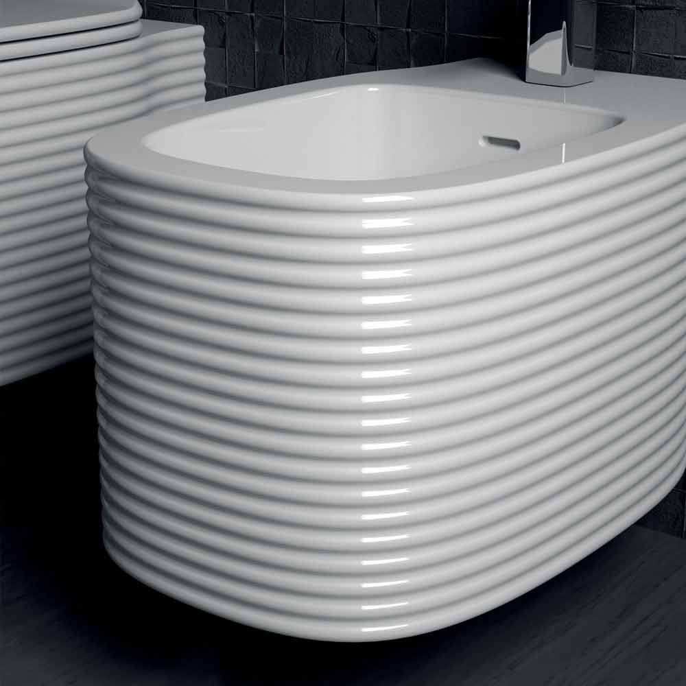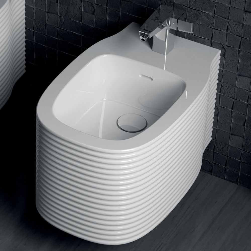 Hängendes Bidet des modernen Designs in den Tonwaren hergestellt in Italien, Amleto Amleto ist ein außergewöhnliches hängendes Bidet, das in Italien in Keramik handgefertigt wird. Dank seines exzentrischen und kreativen Designs wird es Ihr Badezimmer zum Protagonisten.