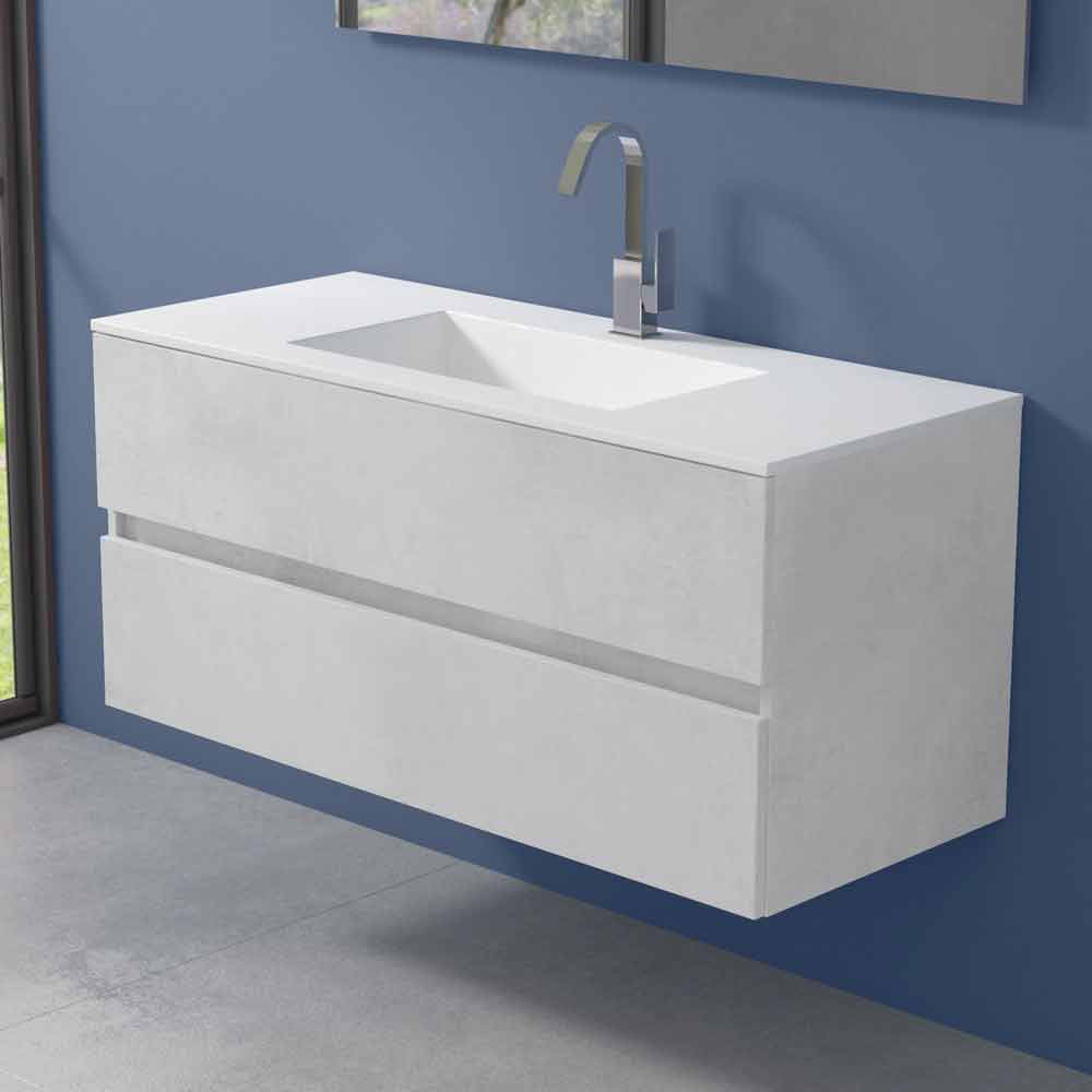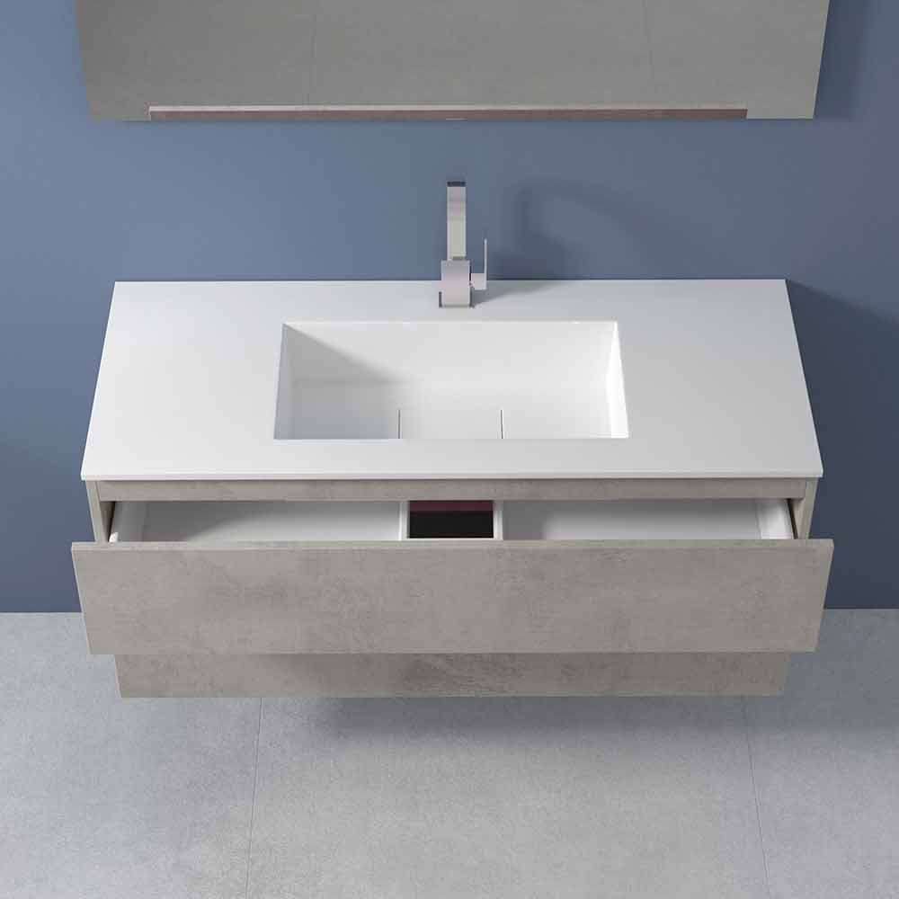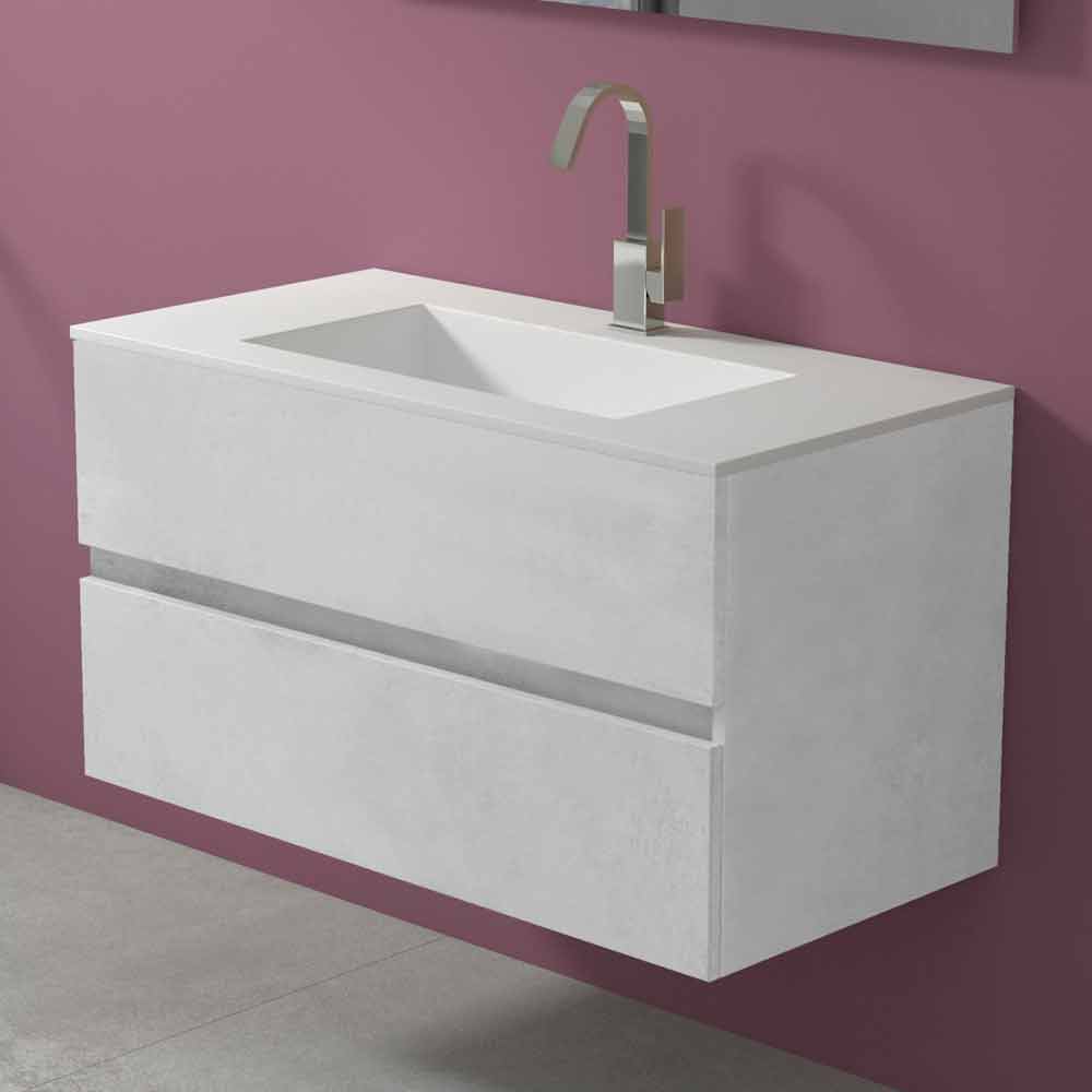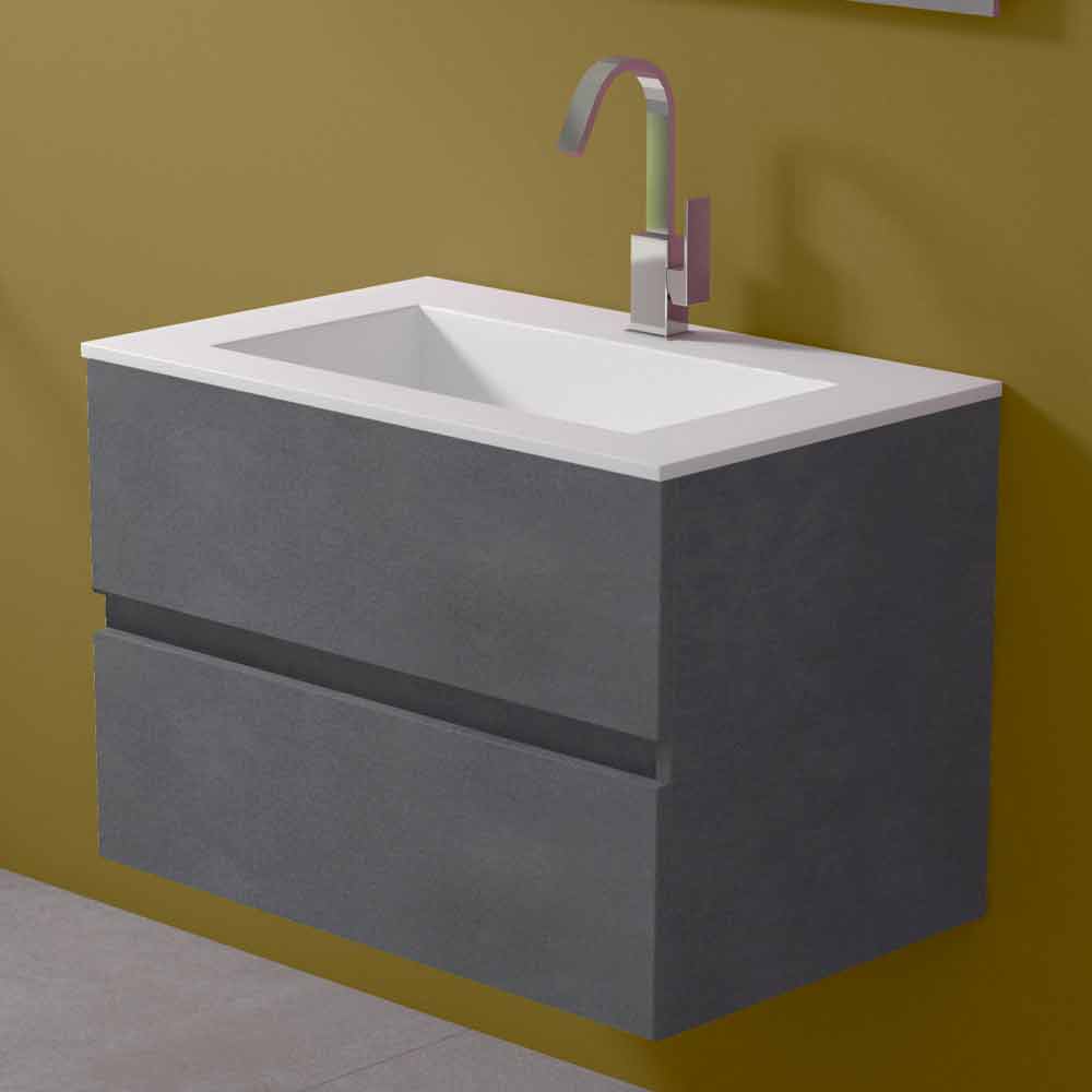 Es handelt sich um ein hängendes Badezimmermöbel mit integriertem rechteckigem Waschbecken , das nicht nur Praktikabilität und Funktionalität, sondern auch eine raffinierte und moderne Atmosphäre für ein zeitloses Design garantiert.