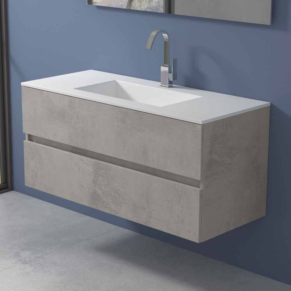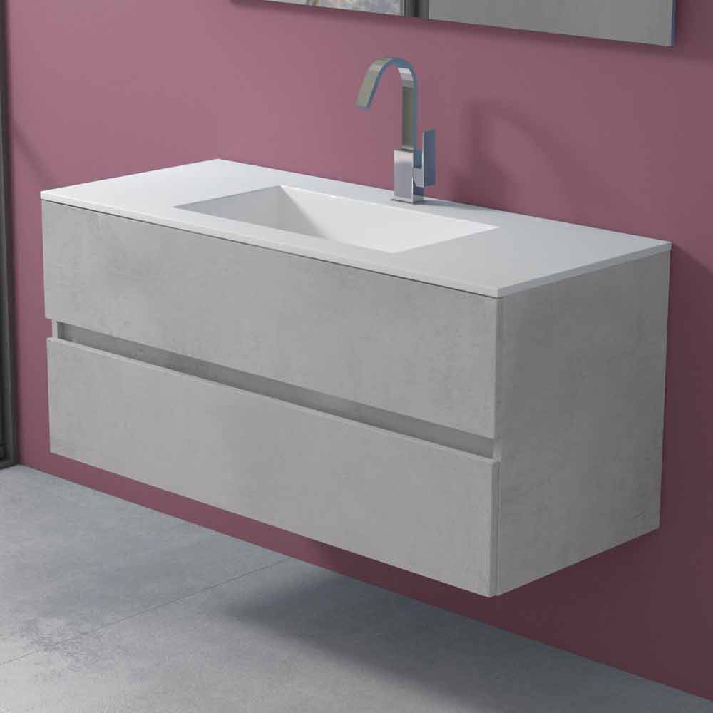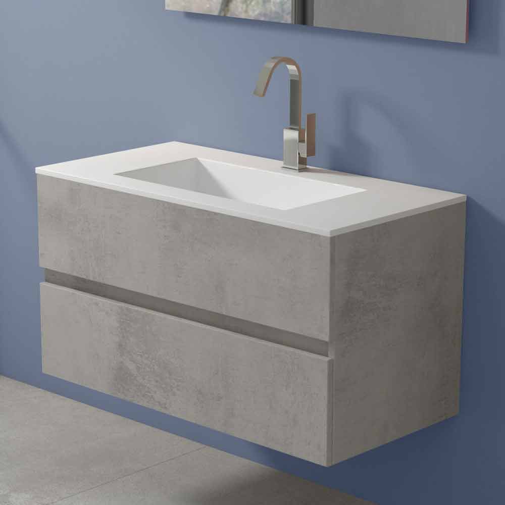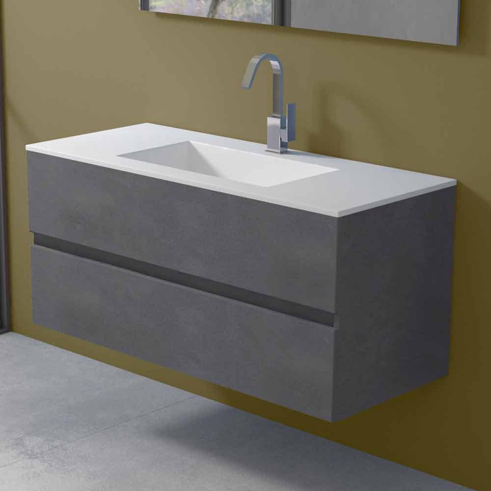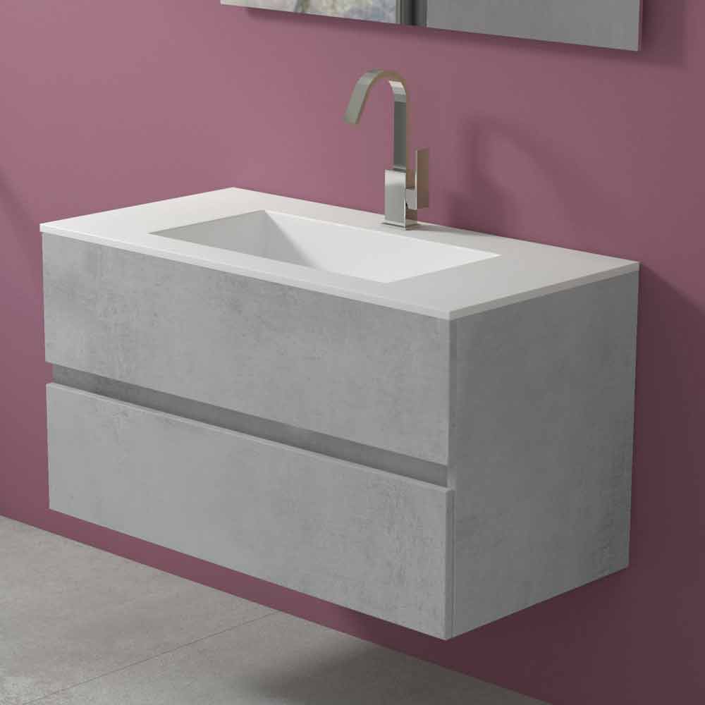 Es handelt sich um ein hängendes Badezimmermöbel mit integriertem rechteckigem Waschbecken , das nicht nur Praktikabilität und Funktionalität, sondern auch eine raffinierte und moderne Atmosphäre für ein zeitloses Design garantiert.