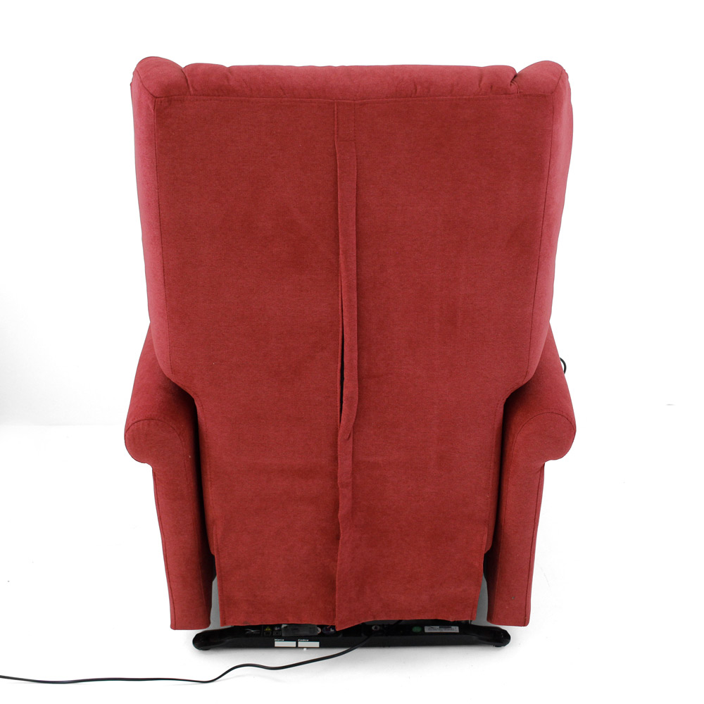 Aufstehsessel mit integriertem Rollensystem , Metall- und Holzrahmen sowie formstabiler Polyurethanschaumpolsterung in verschiedenen Dichten, Ausführung Lux Bordeaux. Das Produkt umfasst zwei Motoren und eine Fernbedienung zur komfortablen Steuerung aller verfügbaren Funktionen. Dieser Sessel eignet sich für alle, die Komfort und Entspannung genießen möchten, dank der anatomisch geformten und bequemen Rückenlehne und der Polsterung, die einen komfortablen und anschmiegsamen Sitz bietet.