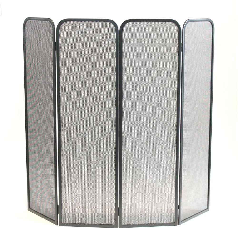 Dieser Herdschutz ist ein funktionales und anspruchsvolles Designelement, das eine doppelte Rolle bei der Verwaltung und Sicherheit Ihres Kamins spielt. Dieser Bildschirm besteht aus vier rechteckigen Paneelen , die durch robuste Scharniere verbunden sind. Er besteht aus feinmaschigem Drahtgeflecht und wird von einem soliden schwarzen Metallrand umrahmt. Das Netz bietet eine ungehinderte Sicht auf das tanzende Feuer, sodass sich die Wärme in der gesamten Umgebung ausbreiten kann, während gleichzeitig Funken und glühende Trümmer blockiert werden.