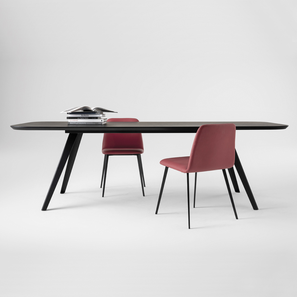 Hochwertiger Esstisch aus Metall mit Eschenplatte Made in Italy.