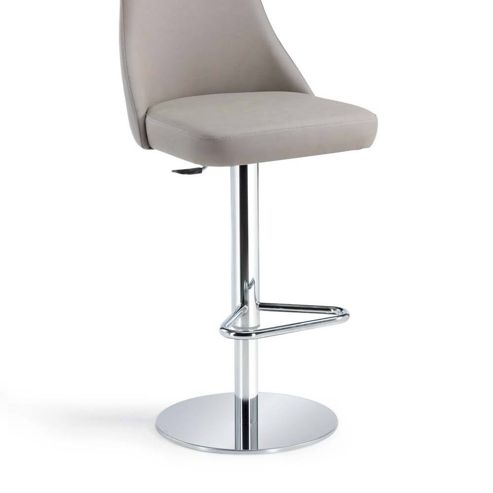 Vollständig in Italien hergestellter Küchenhocker mit Sitzbezug aus grauem, elegantem Kunstleder und runder Drehstruktur aus verchromtem Metall mit verstellbarer Gasfeder, max. 59/85 cm. Hocker mit klassischem und raffiniertem Geschmack, mit einem sehr bequemen Sitz und einer umhüllenden Rückenlehne, perfekt für alle, die ihre Küche gerne mit Geschmack und Design einrichten.