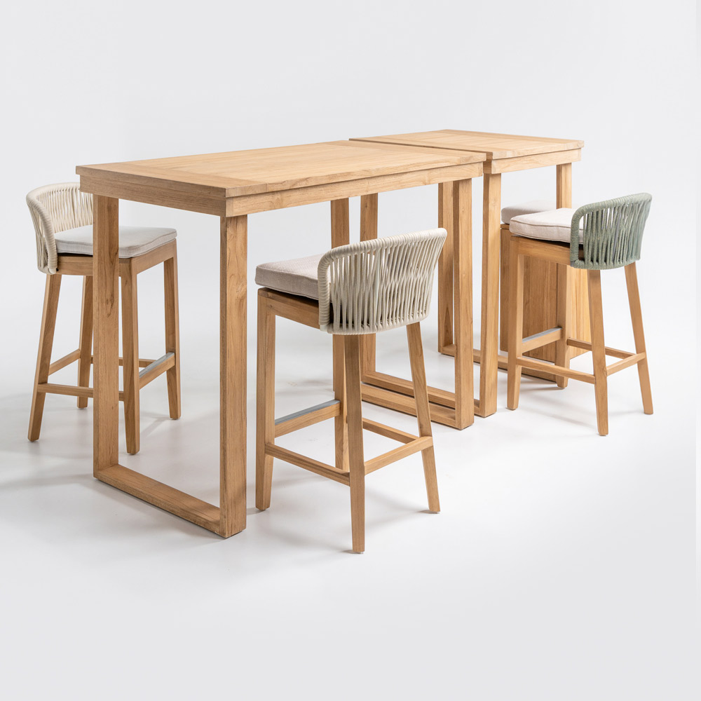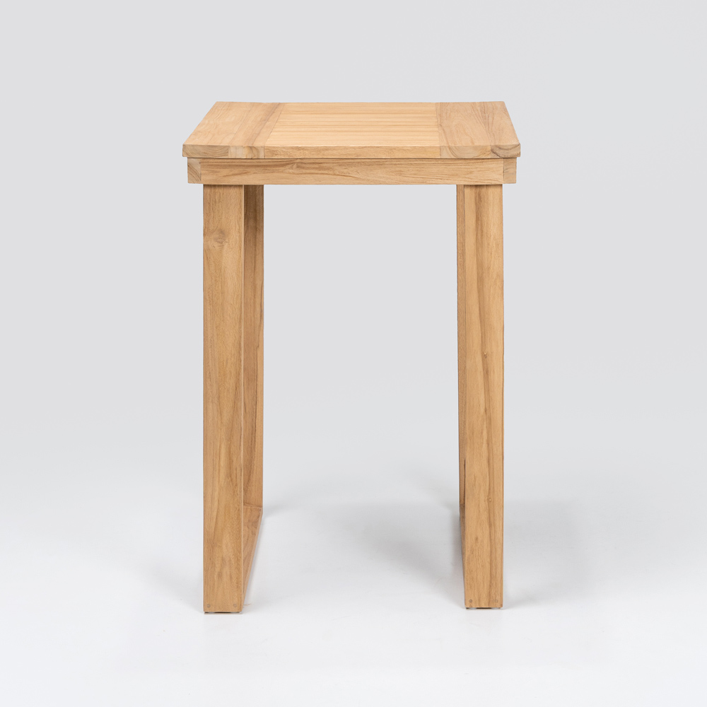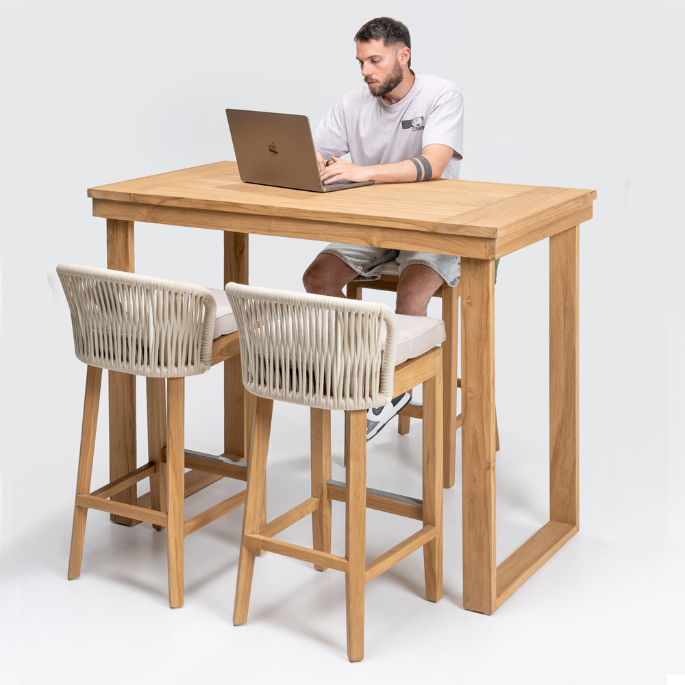Dieser elegante Stehtisch vereint anspruchsvolles Design mit natürlichen Materialien . Gefertigt aus einem massiven, gebürsteten Teakholzrahmen , ist jedes Detail auf Langlebigkeit und Widerstandsfähigkeit ausgelegt. Die ebenfalls gebürstete Teakholzplatte bietet eine glatte und edle Oberfläche, die die Schönheit des Holzes mit seiner einzigartigen Maserung hervorhebt.