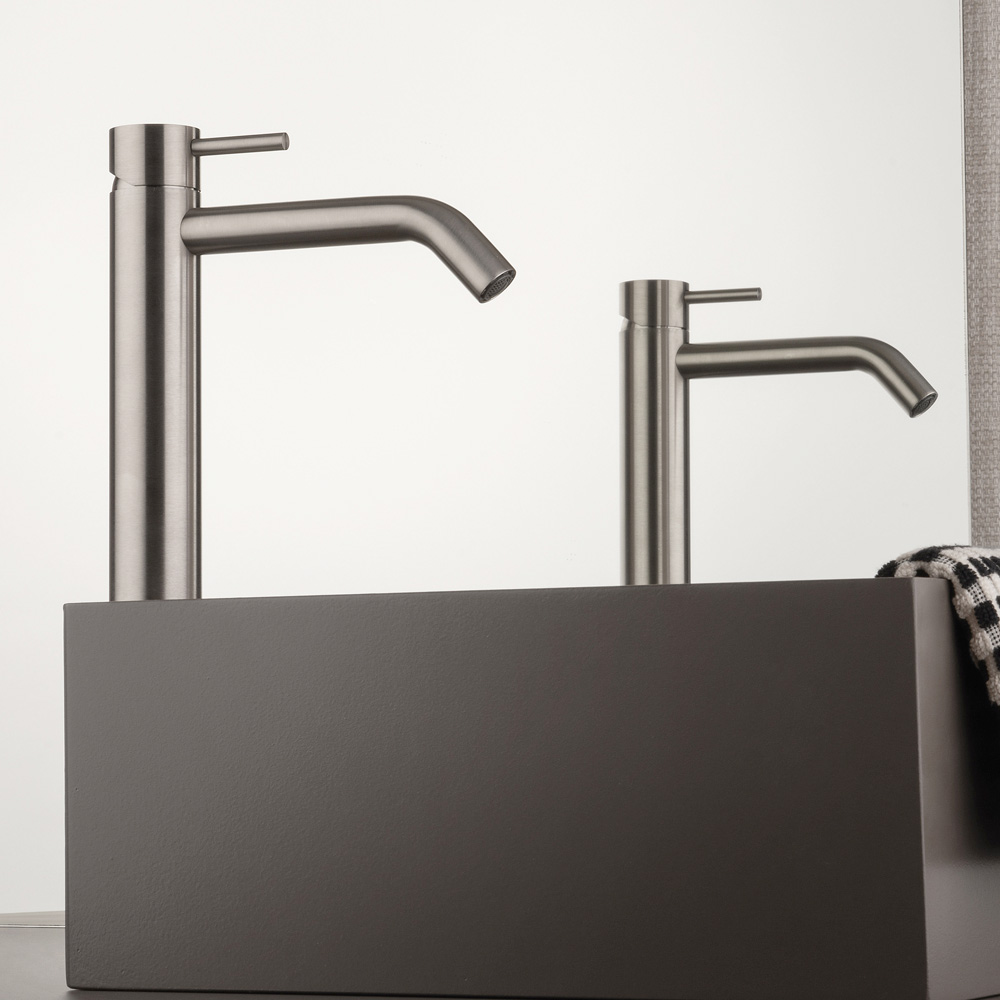 Dieser hohe Waschtischmischer mit langem Auslauf besticht durch sein schlankes und modernes Design und ist ideal, um den modernsten Waschtischen einen Hauch von Eleganz zu verleihen. Die Edelstahloberfläche sorgt nicht nur für ein edles Aussehen, sondern garantiert auch Langlebigkeit und einfache Wartung.
