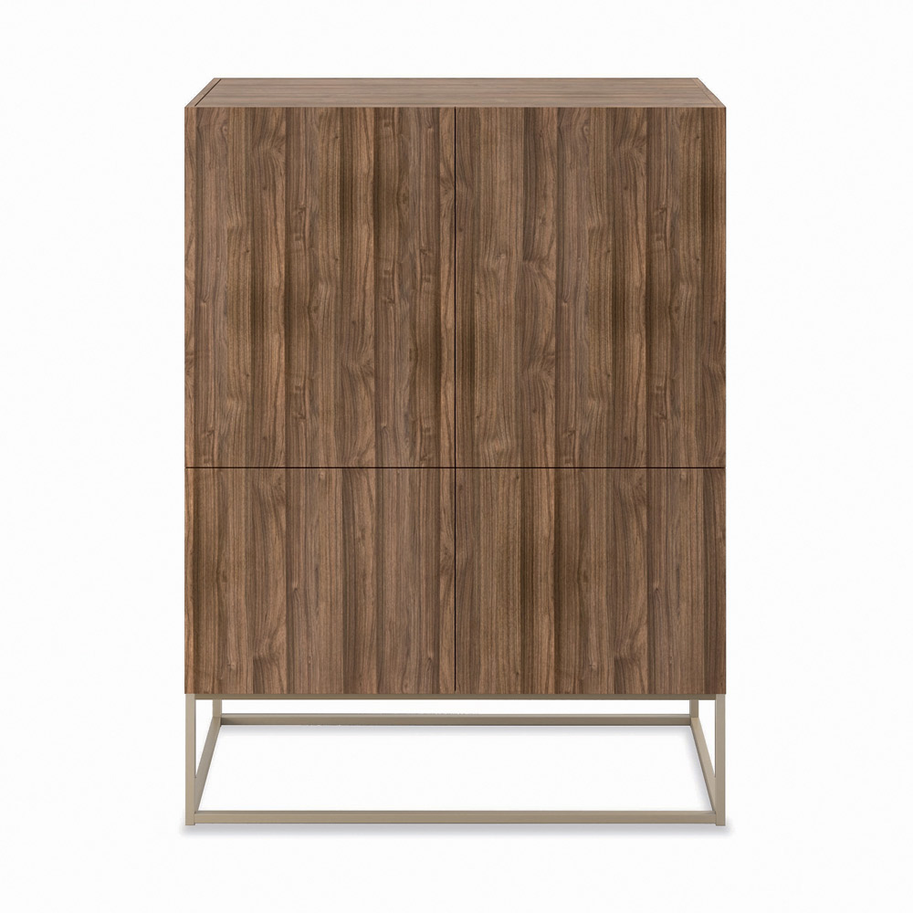 , innen und außen mit Canaletto-Nussbaum furniert und in der Ausführung Canaletto-Nussbaum lackiert. Verstärkte und fertige Rückwand.