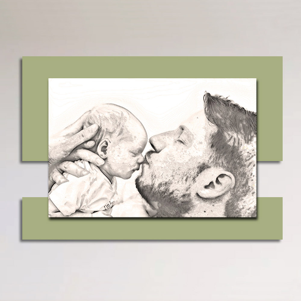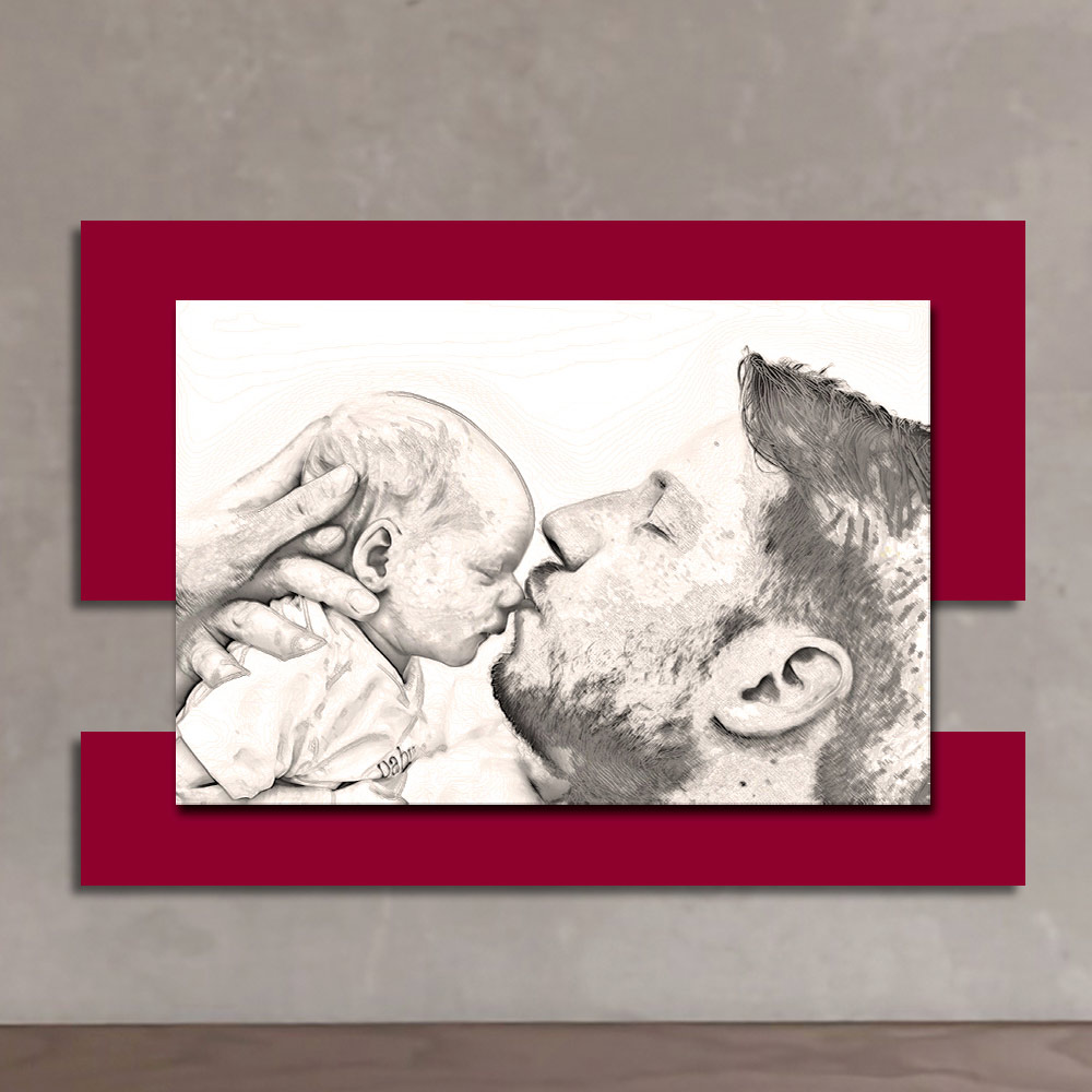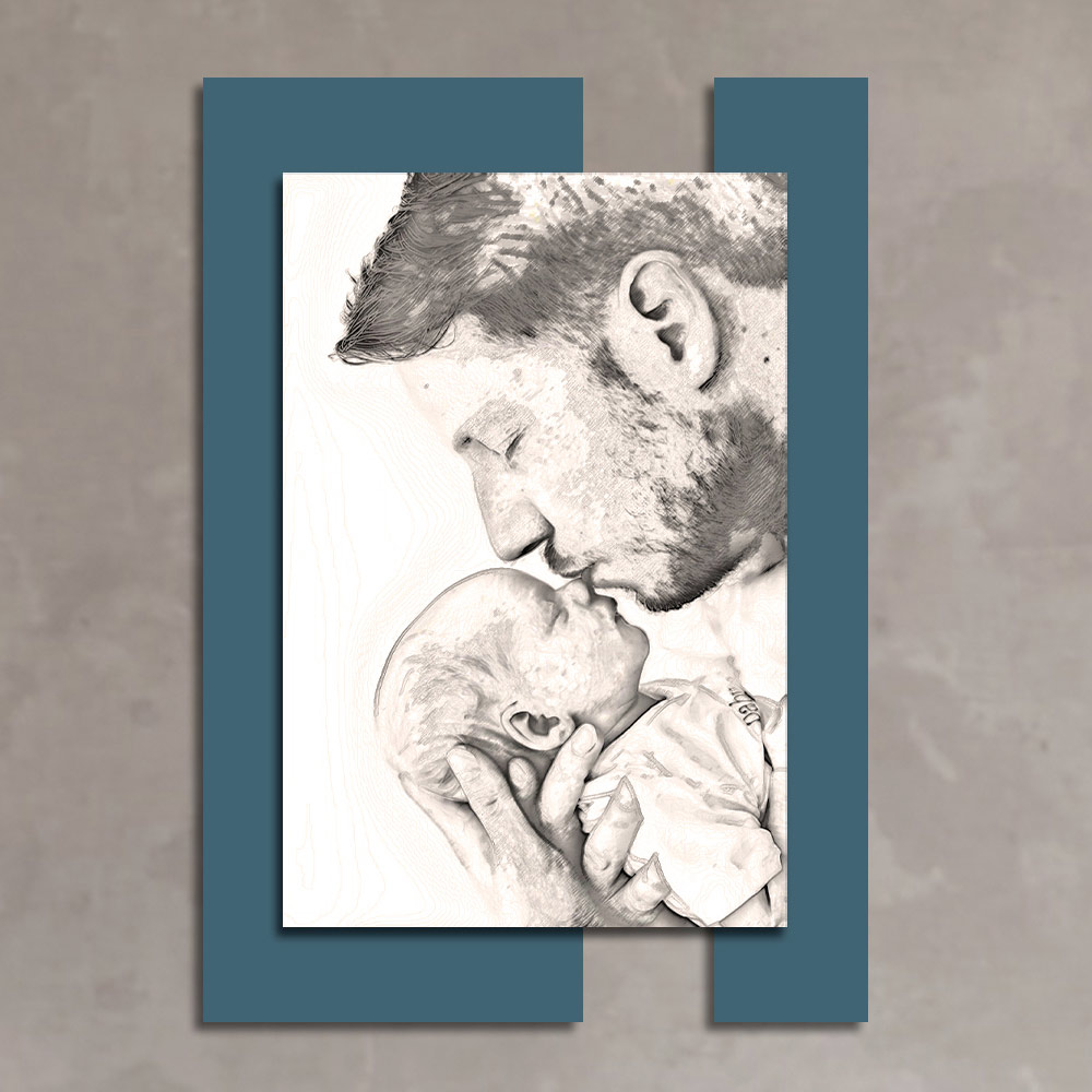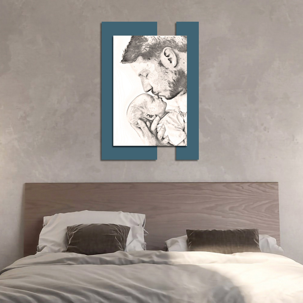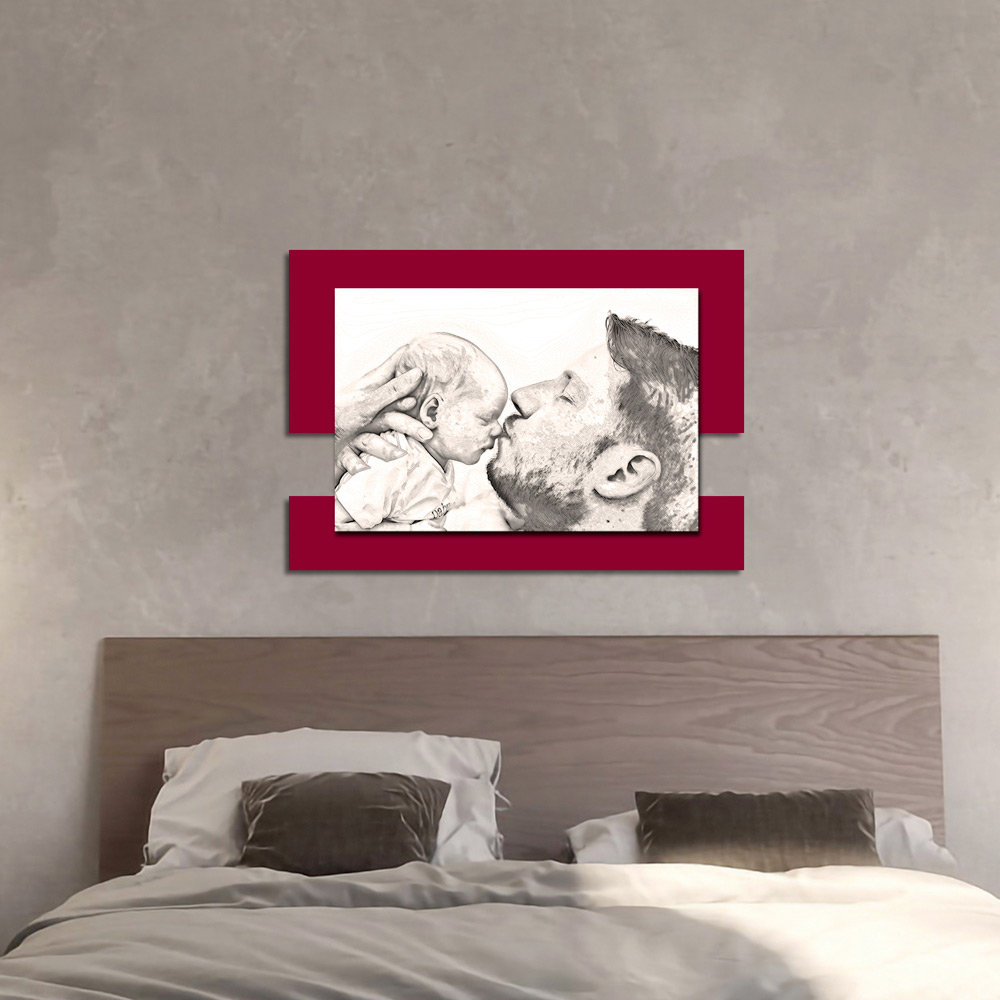 Der Schutz und die Liebe eines Vaters gegenüber seinem Sohn werden durch dieses Gemälde, durch den Kuss auf die Nase und durch die Art und Weise, wie der Vater seine Hände hinter dem Kopf des Kindes verschränkt, eindringlich zum Ausdruck gebracht. Die Oberflächen, das für die Herstellung ausgewählte Holz und die Drucktechnik unterstreichen die Qualität eines in Italien hergestellten Elements , das sich perfekt dazu eignet, die Einrichtung jeder Umgebung perfekt zu vervollständigen und ihr eine warme und einladende Atmosphäre zu verleihen.