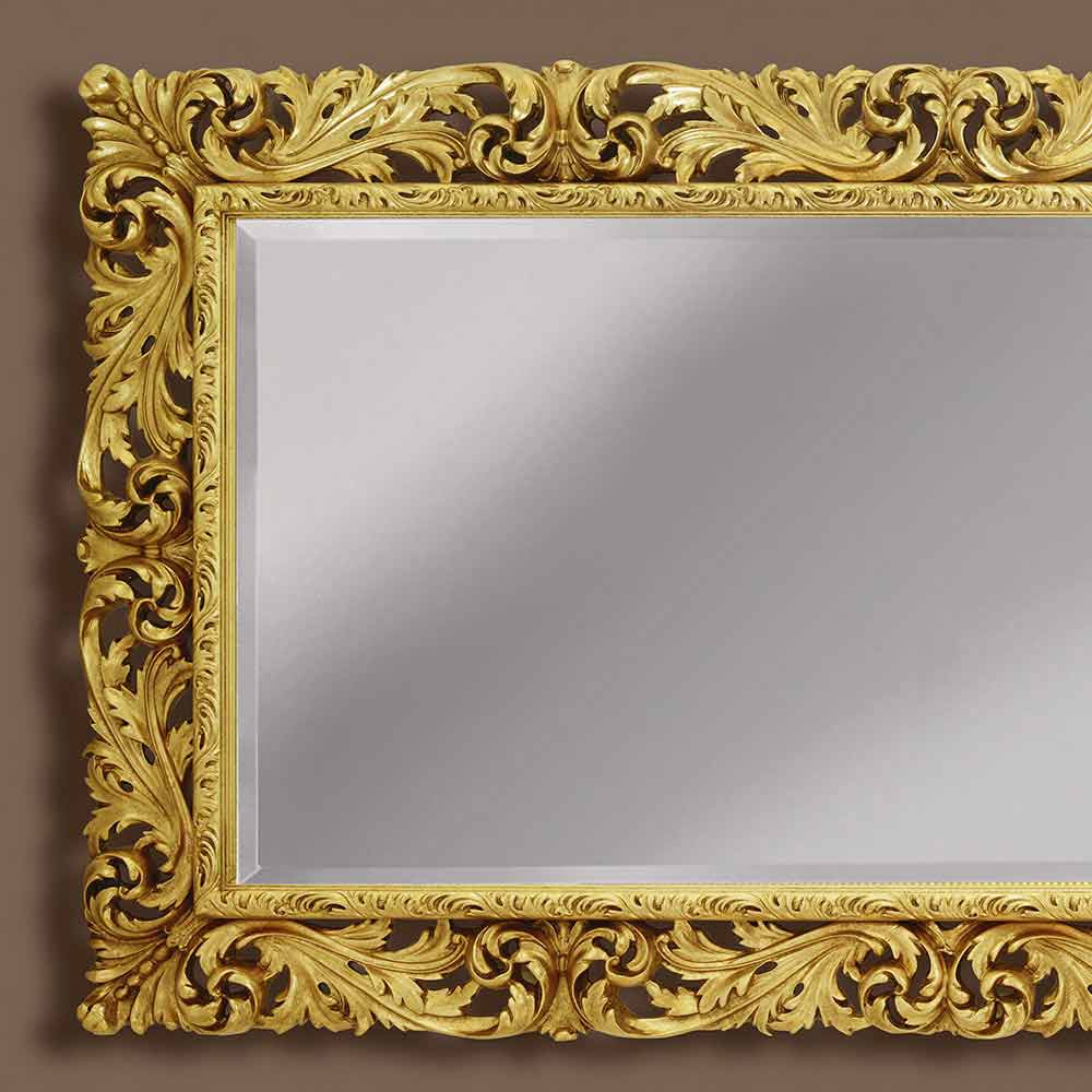 Dieser beeindruckende Spiegel ist ein Meisterwerk der Handwerkskunst , das die Pracht des Barockstils zelebriert. Der Rahmen besteht aus einem komplizierten Geflecht aus Akanthusblatt- und Blumenmotiven, die jeweils sorgfältig gemeißelt sind, um einen dreidimensionalen Effekt zu erzeugen, der sowohl haptisch als auch optisch atemberaubend ist.