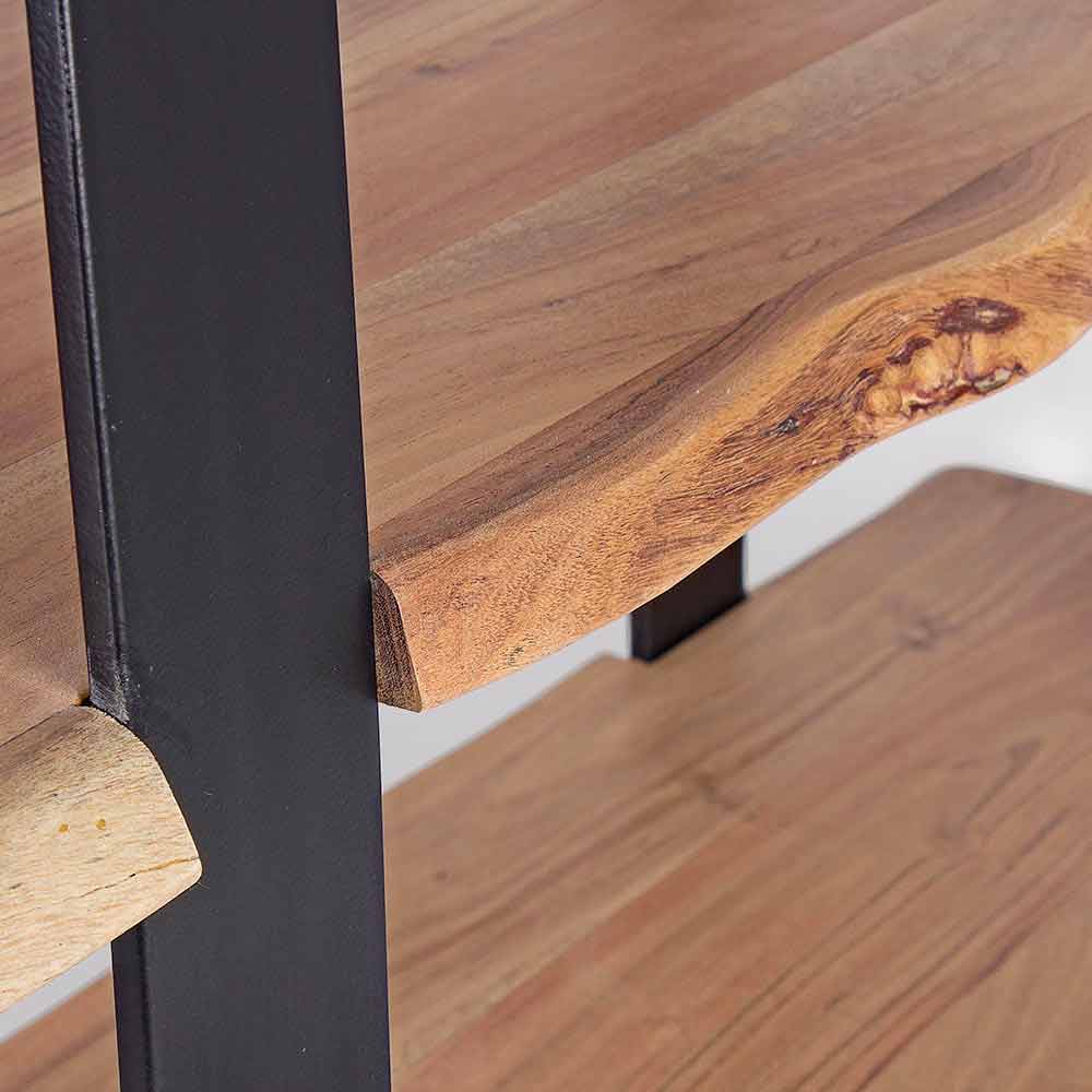 Modernes Design-Bücherregal aus lackiertem Stahl und Akazienholz.