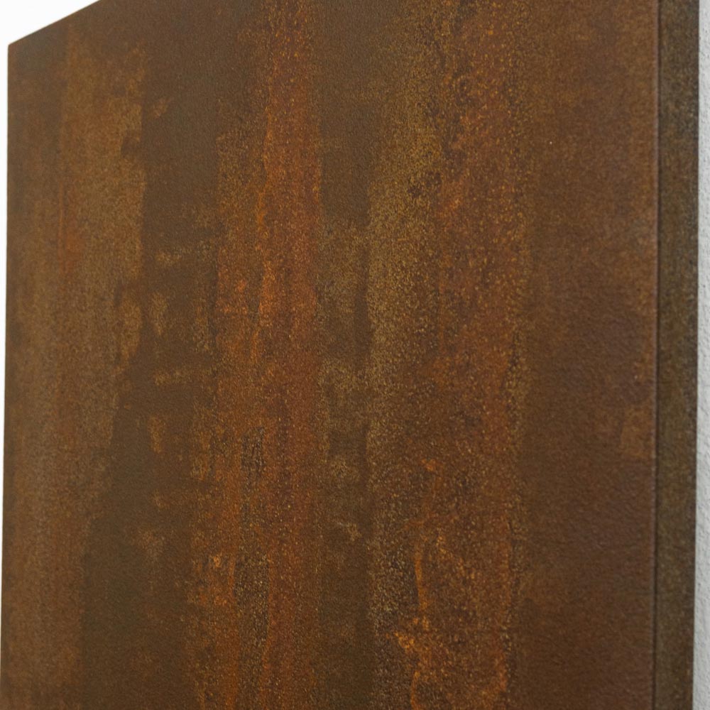 Erzeugung des Corten-Effekts beginnt mit dem Auftragen einer pigmentierten Farbe, die reich an Eisenzuschlagstoffen ist. Durch die Zerstäubung einer Kontrastsubstanz wird die Umwandlung der Oberfläche eingeleitet, wodurch die Reaktion der Pigmente aktiviert wird.