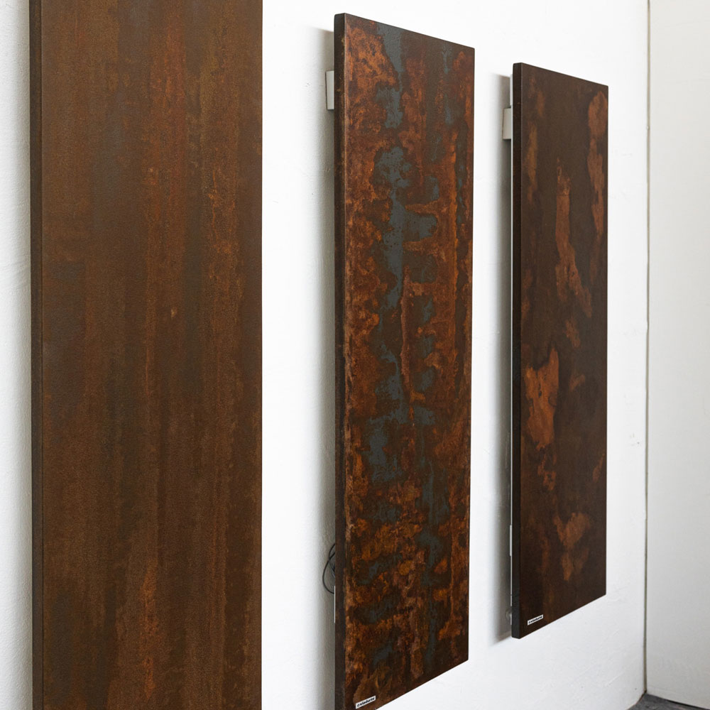 Hybridheizkörper in Corten-Optik aus glattem Marmorpulver. Made in Italy