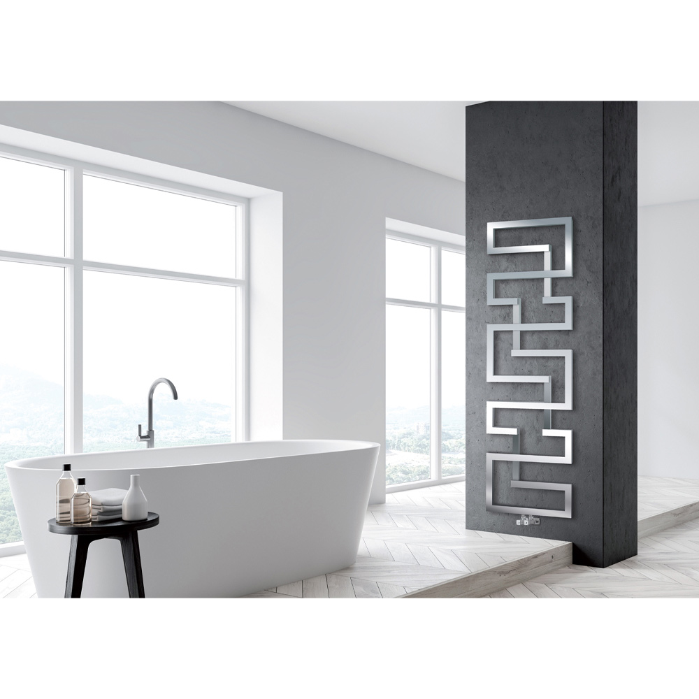 Hydraulischer Heizkörper aus verchromtem Edelstahl, bestehend aus Elementen mit quadratischem Querschnitt von 3 cm, vollständig in Italien hergestellt, inklusive Wandbefestigungssatz, Entlüftungsventil und Blindstopfen . Dieses Produkt vereint Technologie und formale Präsenz und wird zu einem echten Designobjekt, einer Quelle des Wohlbefindens und des ästhetischen Vergnügens. Es ist viel mehr als eine einfache Wärmequelle, es ist ein Möbelstück, das Umgebungen personalisieren und vervollständigen kann. Design und Funktionalität vereinen sich und erwecken ein Möbelstück zum Leben, das nicht nur schön, sondern auch nutzbar und effizient ist und die Qualität der Handwerkskunst „Made in Italy“ garantiert.