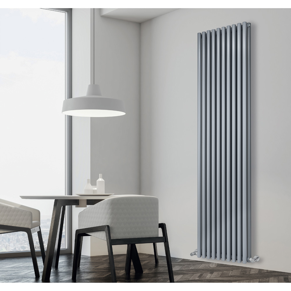 Hydraulischer Heizkörper aus Kohlenstoffstahl mit fenstergrauer Oberfläche, bestehend aus einer doppelten Reihe vertikaler Elemente mit einem Durchmesser von 3,5 cm, die auf horizontale Verteiler mit einem Durchmesser von 3,5 cm geschweißt sind, vollständig in Italien hergestellt,inklusive Wandbefestigungsset, Entlüftungsventil und Blindkappe . Es wird in einer Manufaktur in Treviso, nur wenige Kilometer von Venedig entfernt, gefertigt und basiert auf den Werten Professionalität, Fachwissen und Erfahrung , um alle Qualitäten italienischer Handwerkskunst zu garantieren. Design und Funktionalität verschmelzen zu einem schönen, benutzerfreundlichen und effizienten Produkt, das sich harmonisch in jede Einrichtung einfügt.