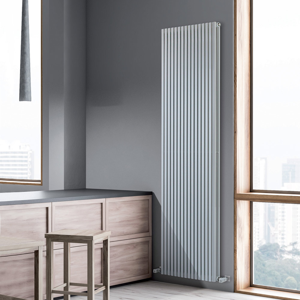 Hydraulischer Heizkörper aus Kohlenstoffstahl mit reinweißer Hochglanzlackierung, bestehend aus zwei Reihen vertikaler Elemente mit einem quadratischen Querschnitt von 2 cm, die auf horizontale Verteiler mit einem Durchmesser von 3,5 cm geschweißt sind, vollständig in Italien gefertigt , inklusive Wandbefestigungssatz, Entlüftungsventil und Blindkappe . Die gesamte Produktion findet in einer Fabrik nahe Treviso, nur wenige Kilometer von Venedig entfernt, statt, wo Qualität oberste Priorität hat . Qualität bedeutet hier akribische Detailgenauigkeit und die Auswahl hochwertigster Materialien. So entstehen Heizkörper von höchster Designreinheit und Funktionalität.