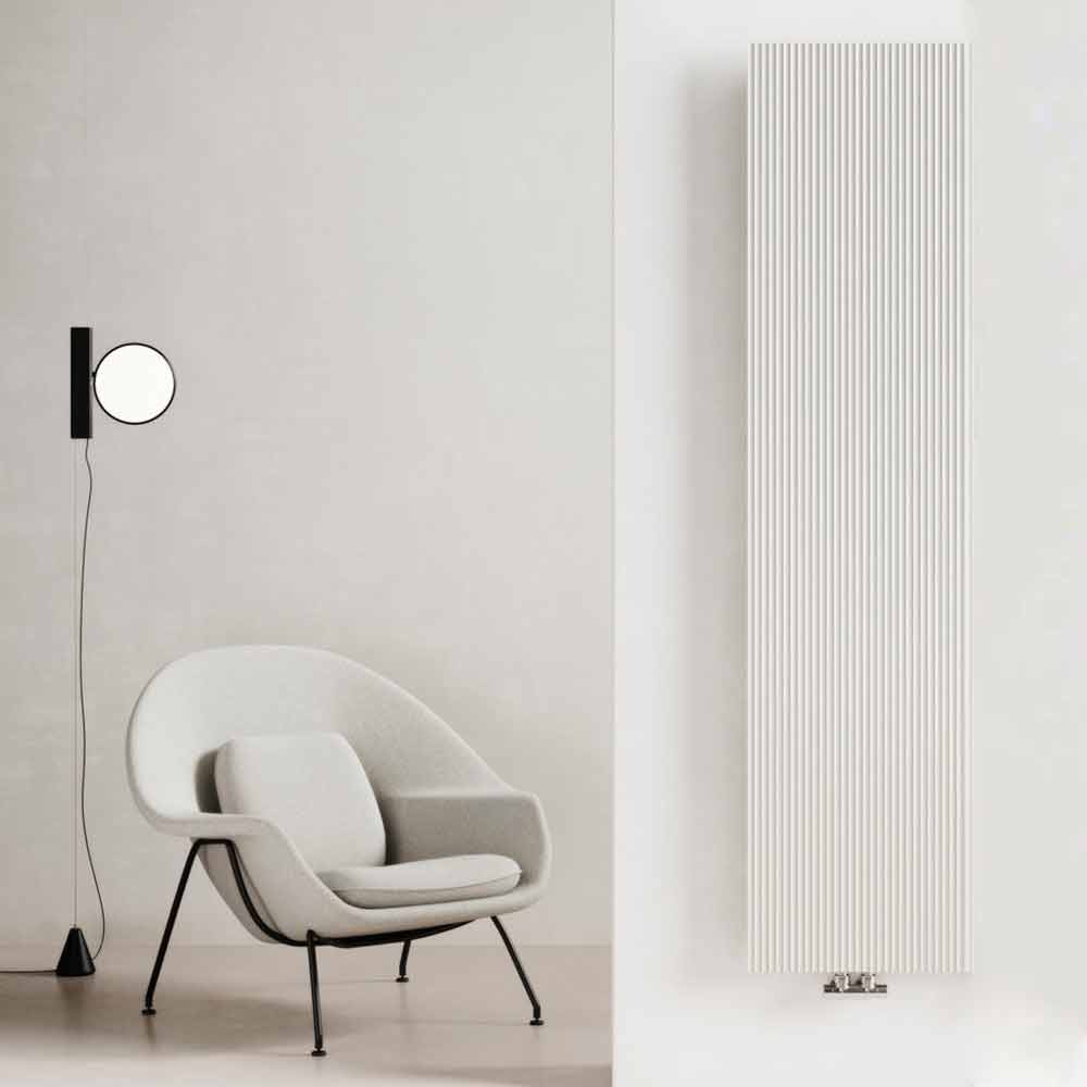 Dieser hydraulische Kühler hat ein modernes Design, in dem der eigentliche Protagonist die Architektur ist, die durch Linien mit wechselndem Rhythmus gekennzeichnet ist, die Lichtspiele und Dialoge mit dem umgebenden Raum erzeugen.