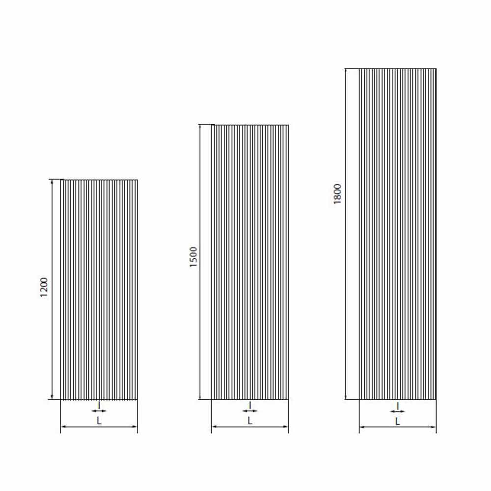 • H 1800 x L 420 x Inter. 50 mm x Ausgang w (Δt50 *) 810; Ausbeute w (Δt30 *) 415; Ausbeute w (Δ26 *) 351;