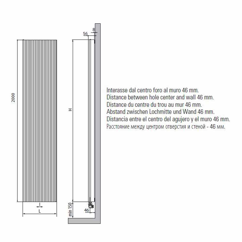 Moderner Wandkühler aus Aluminium mit hydraulischem Design, hergestellt in Italien.