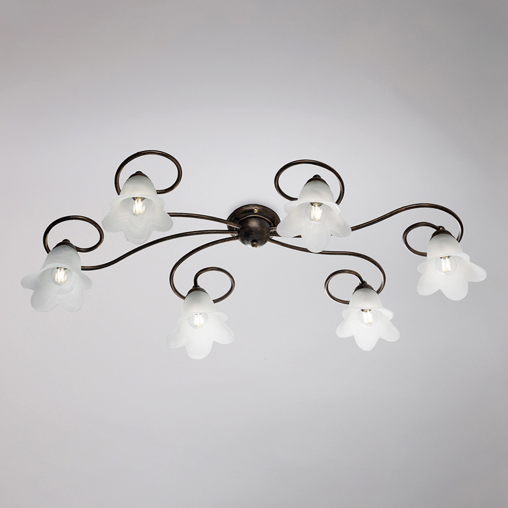 Die sorgfältig ausgewählten Materialien – Eisen und Glas – verleihen der Leuchte eine elegante Wirkung und ein angenehmes Licht. Diese vollständig in Italien gefertigte Deckenleuchte ist das Ergebnis akribischer Handwerkskunst, die Ästhetik und Funktionalität gleichermaßen vereint.