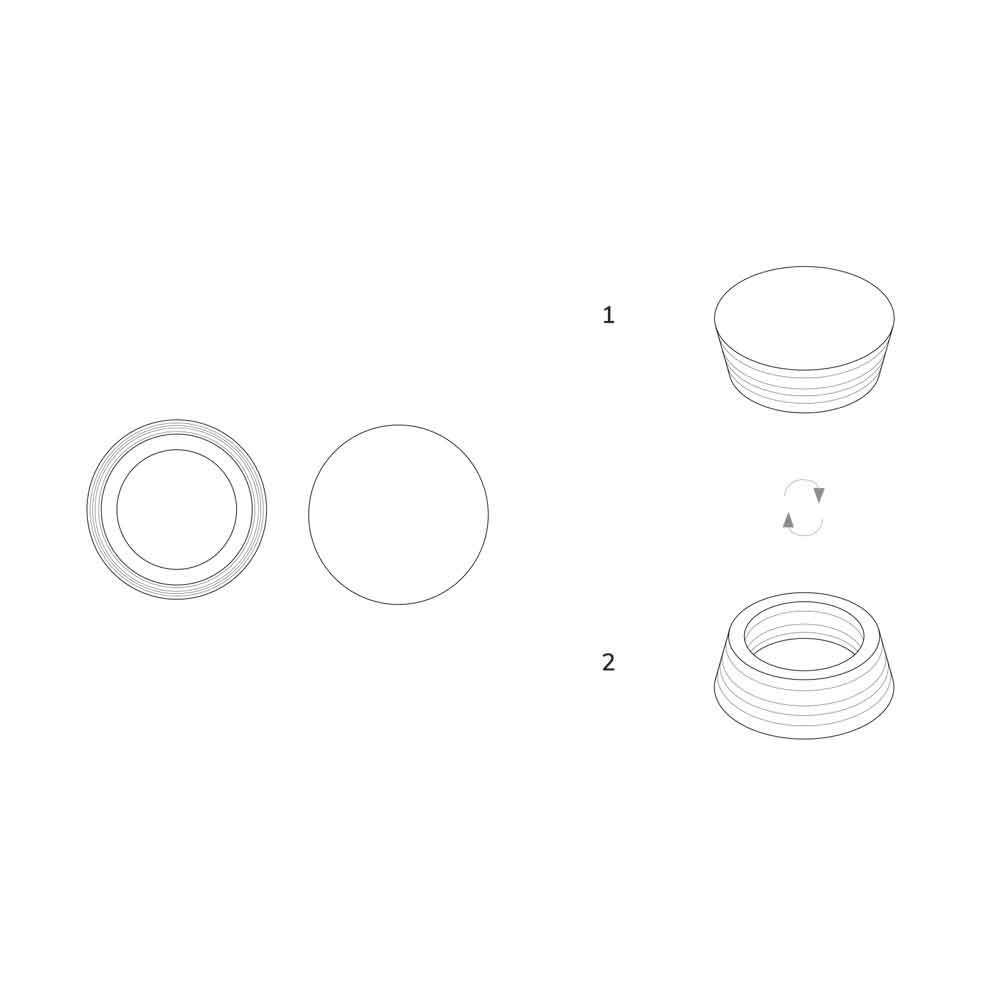 So entstand ein vielseitiges Produkt in Gebrauch und Design, das dank der Oberflächenbehandlung, die es für den Kontakt mit Lebensmitteln geeignet macht, sowohl als Herzstück sowohl als Behälter als auch als erhöht fungieren kann.
