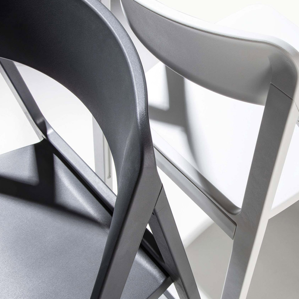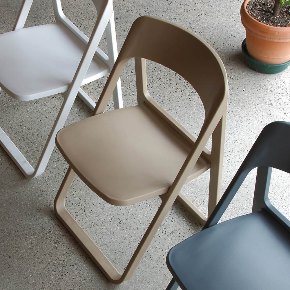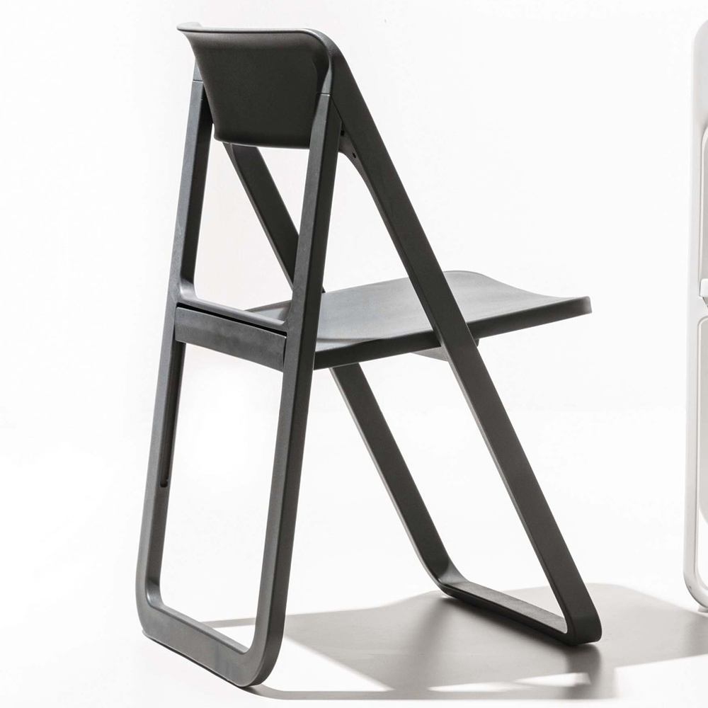 Moderner Stuhl aus farbigem Polypropylen , der sich durch die besondere Faltstruktur auszeichnet, die ihn ideal für die Einrichtung jedes Wohn- oder Objektbereichs mit Persönlichkeit und Originalität macht. Eine Ergänzung mit kreativer Ästhetik und essentiellen Formen , die den Umgebungen Farbe und Lebendigkeit verleiht und dank der Möglichkeit, die Struktur zusammenzufalten, eine besonders funktionale Lösung bietet und so bei Nichtgebrauch nur minimalen Platz einnimmt.
