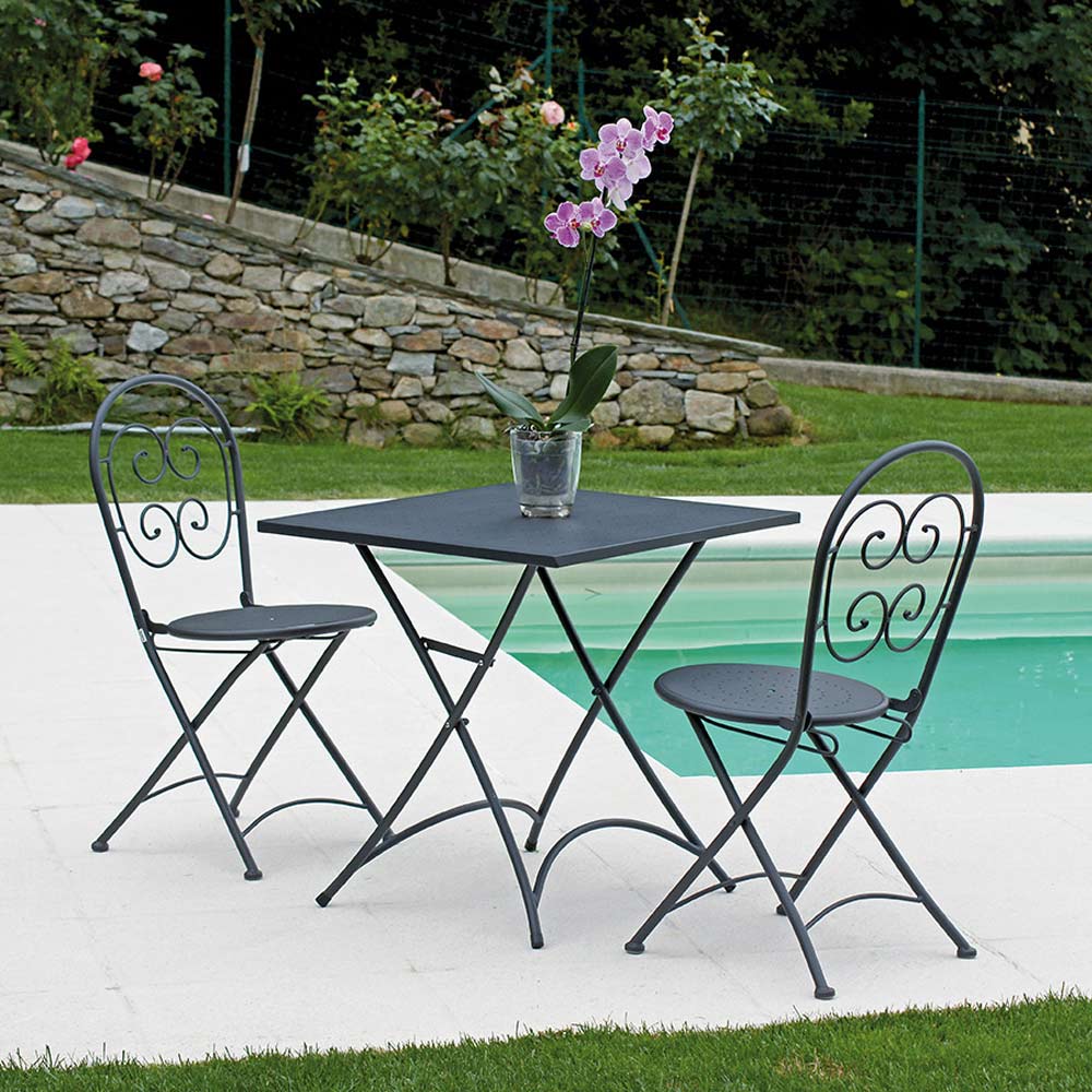 Klappbarer Gartentisch mit Platte und Untergestell aus Eisen mit anthrazitgrauer Oberfläche . Ein Möbelstück, das sich durch eine einfache und funktionale Ästhetik mit quadratischer Form auszeichnet. Dieser Aspekt macht es zu einer idealen Einrichtungslösung für alle, die ihre Freizeit gerne im Freien verbringen und dabei auf einen Hauch von Exklusivität und Originalität nicht verzichten möchten.