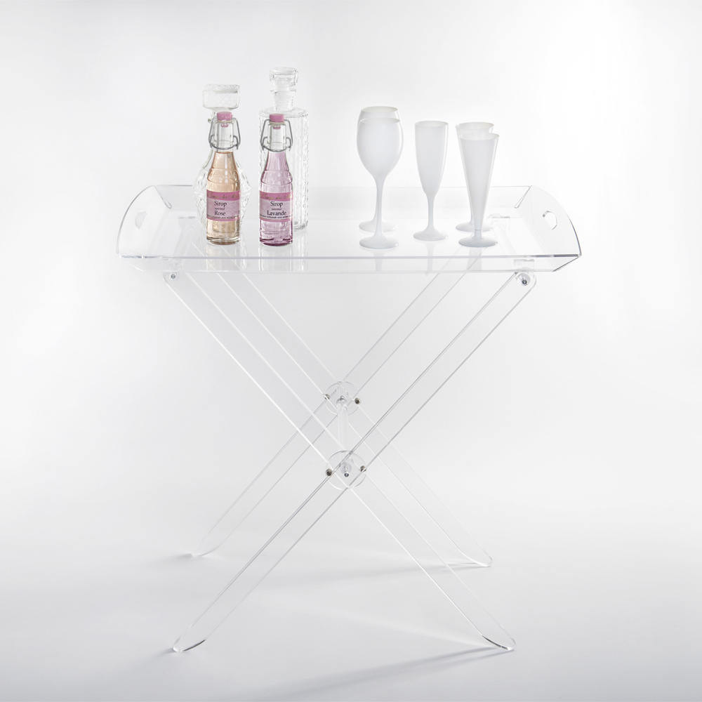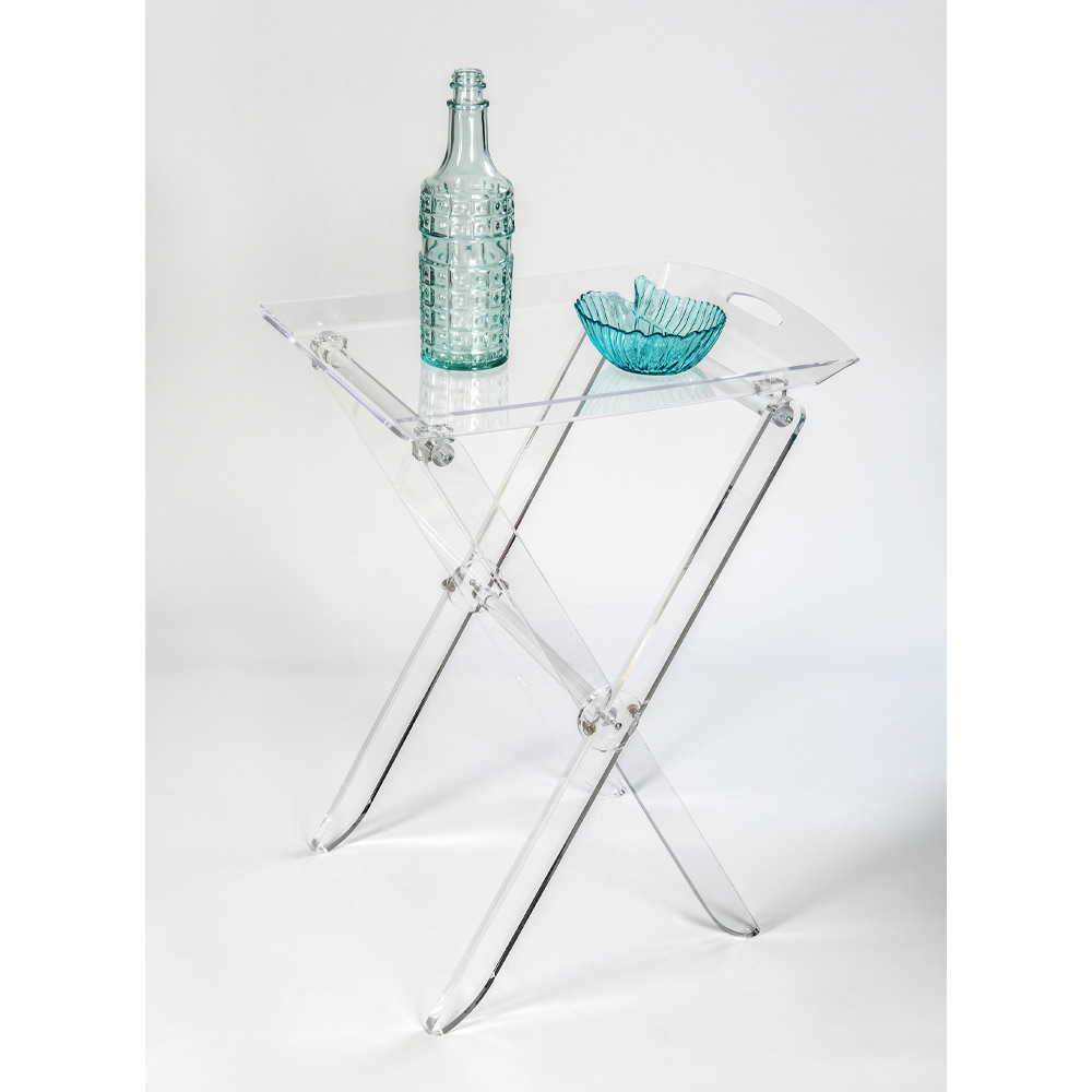 Klapptisch mit Tablett-Regal aus Acrylglas, 2 Größen made in Italy.