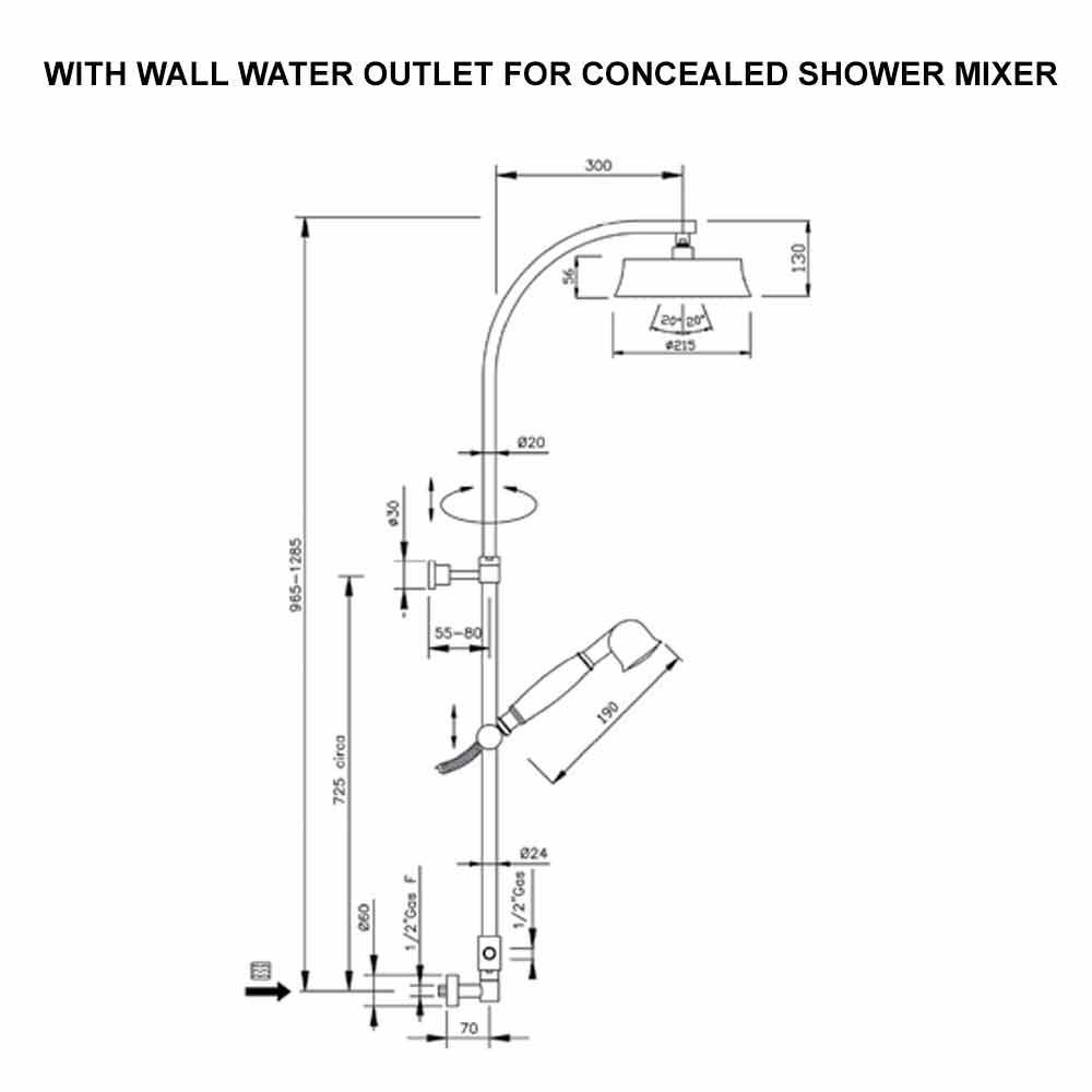 Duschsäule im klassischen Design aus Messing mit rundem Duschkopf. Made in Italy.