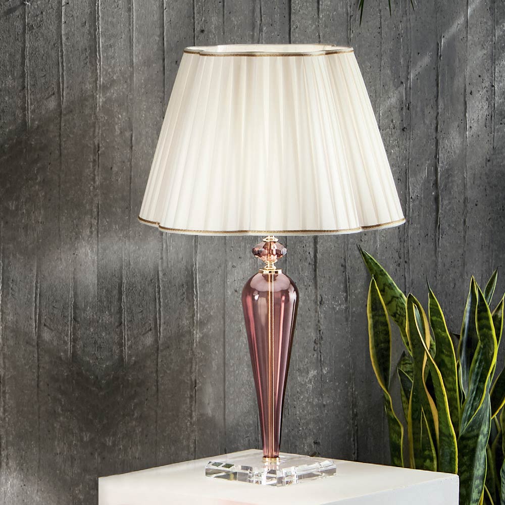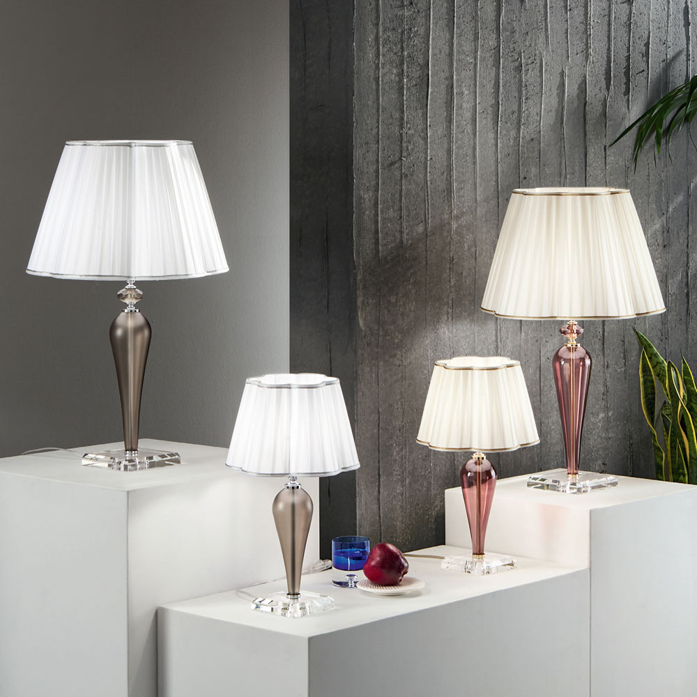 Klassische Tischlampe, handgefertigt aus Glas und Kristall - Mariangela