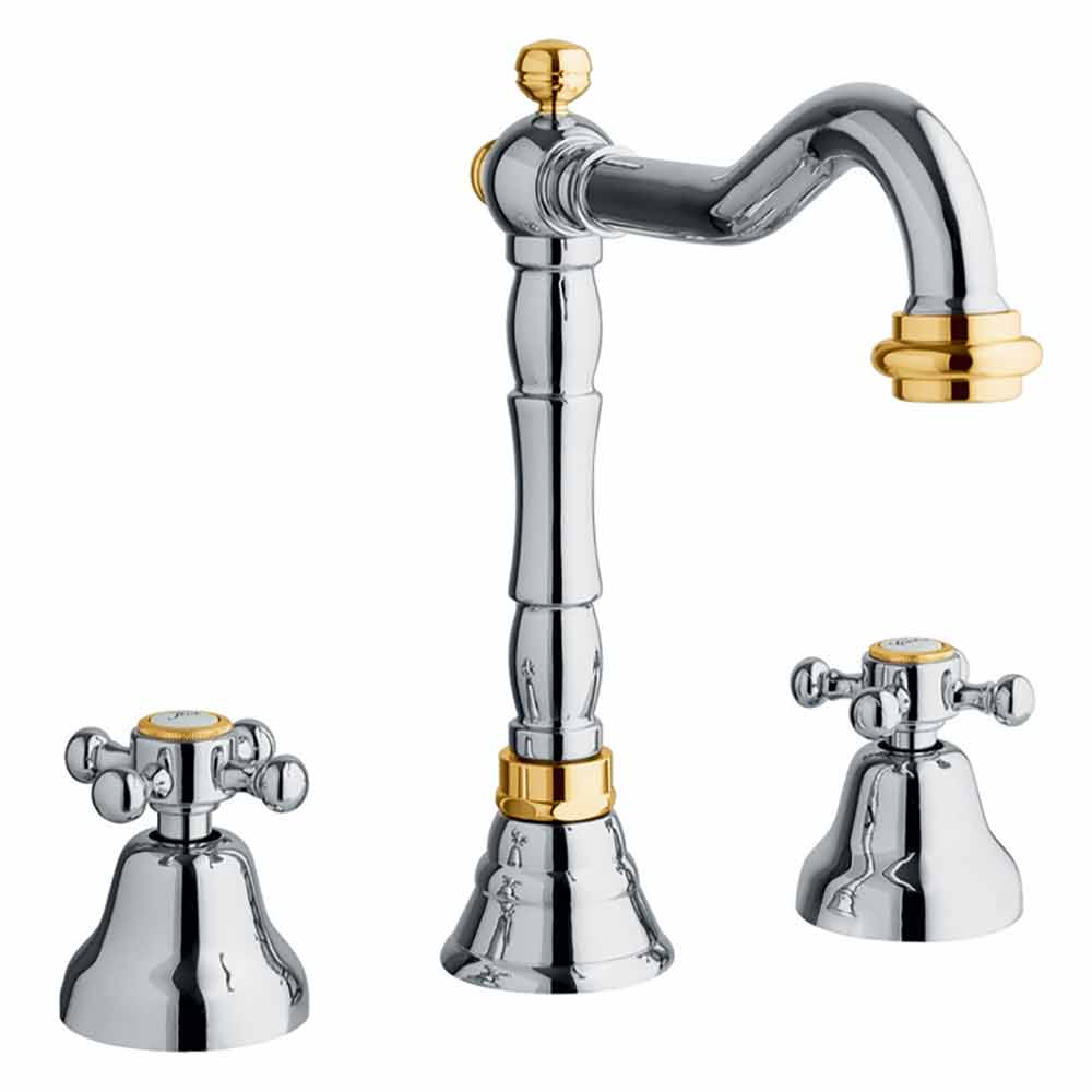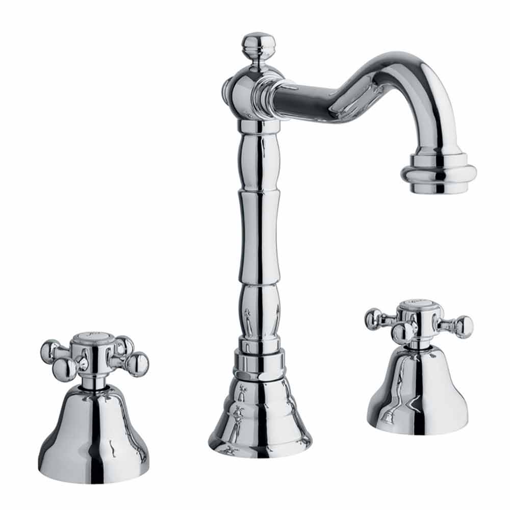 3-Loch-Mixer für Waschbecken im klassischen Design aus Chrom-Messing Made in Italy.
