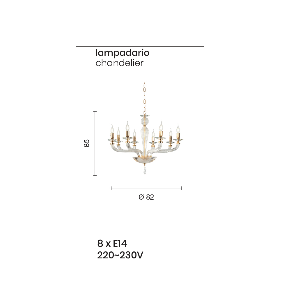 | Anschlusstyp und elektrische Leistung | 8 x E14 220–230 V |
