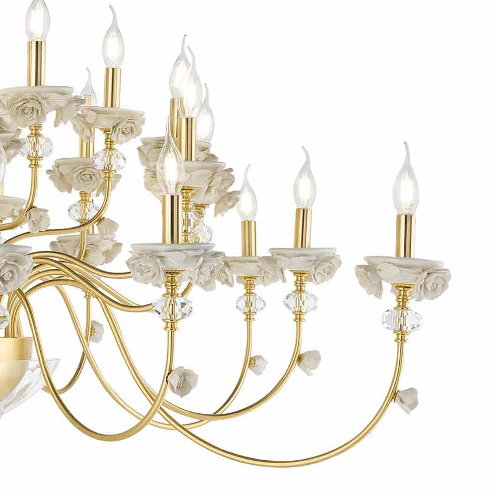 Klassischer Kronleuchter mit 30 Lichtern aus Porzellan und luxuriösem mundgeblasenem Glas - Eteria