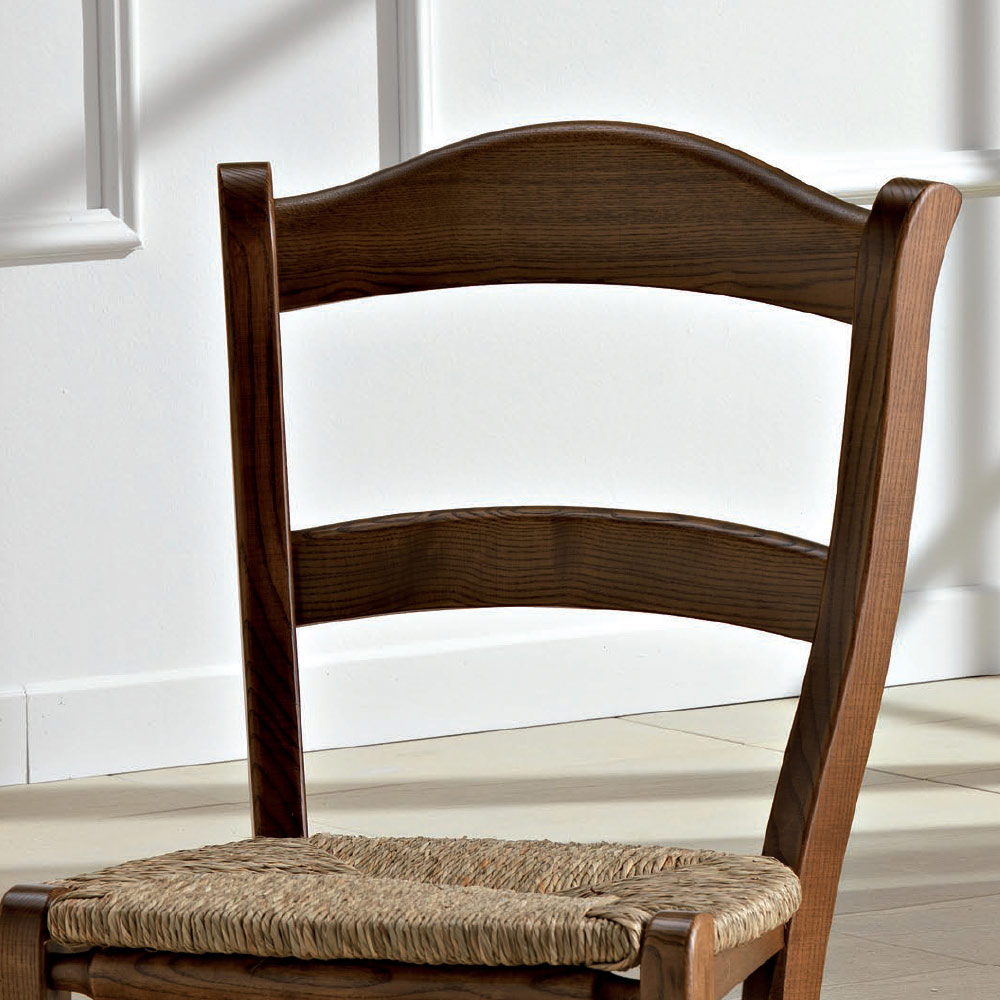 Küchenstuhl aus Holz im klassischen Design und Sitz aus Stroh, hergestellt in Italien.