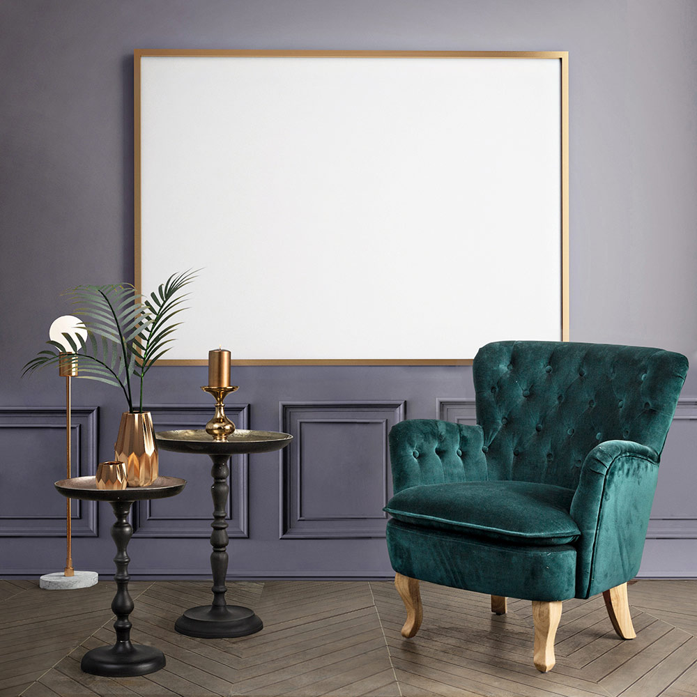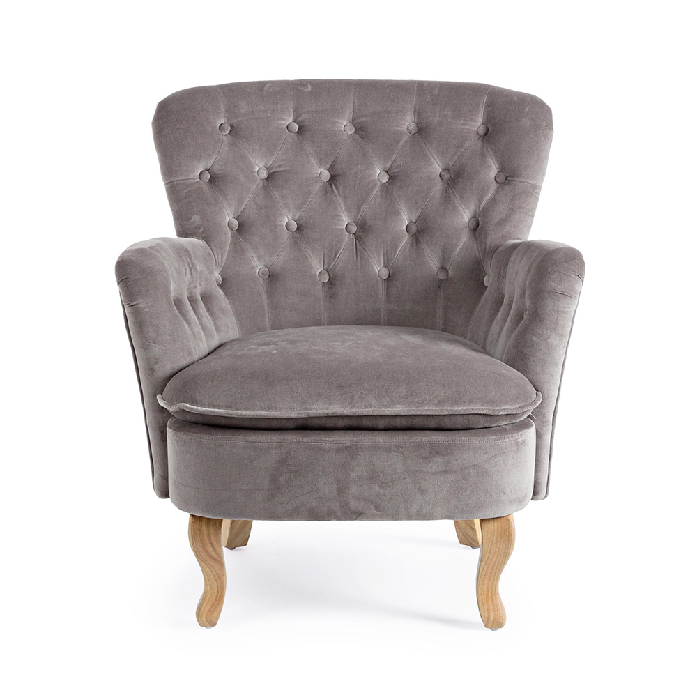 Klassischer Sessel aus Kiefernholz, gepolstert mit geknöpfter Baumwolle in Samtoptik, 3 Ausführungen.