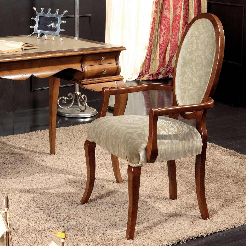 Esszimmerstuhl im klassischen Stil aus Holz mit Walnuss-Finish und gepolstertem Stoff , erhältlich in der Version mit oder ohne Armlehnen. Eine einzigartige und raffinierte Ergänzung, die vollständig in Italien von erfahrenen Handwerksmeistern hergestellt wird, Meister der Kunst, die jede Ergänzung mit Weisheit und Geschmack für Eleganz vervollständigen. Die Produktion erfolgt unter Verwendung hochwertiger Materialien und mit der größten Sorgfalt und Professionalität, die die Produkte Made in Italyauszeichnet .